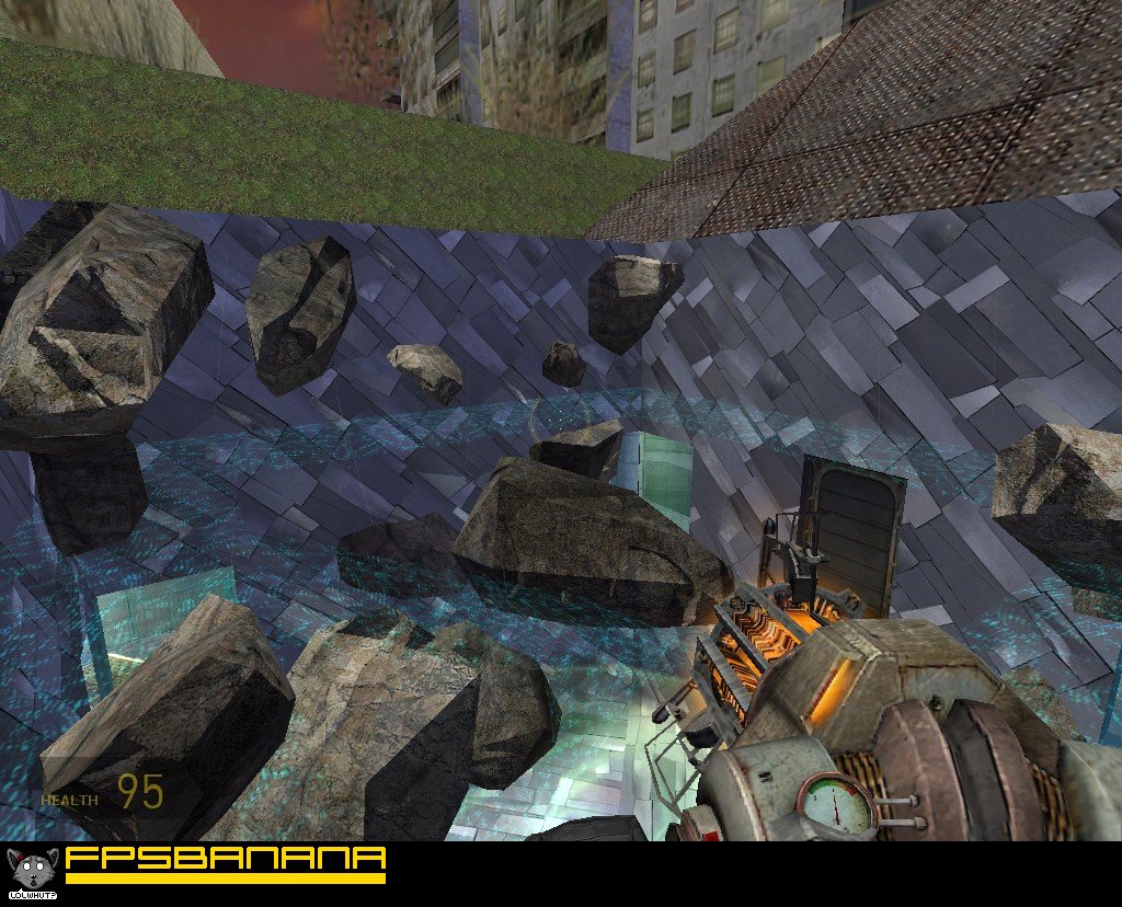 The fifth vdeth is the largest of the vdeths. Like the fourth there's a series of relay switches which change the layout of the level slightly when activated. There's a "duel booth" where you try to hit a button before someone else does in order to blow them up, a floaty rocks room, a trap which will only drop you if you look down, a barrel cloning trap, and several other gimmicks and whatnot.