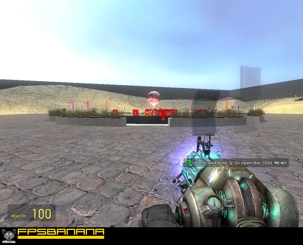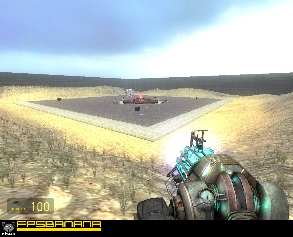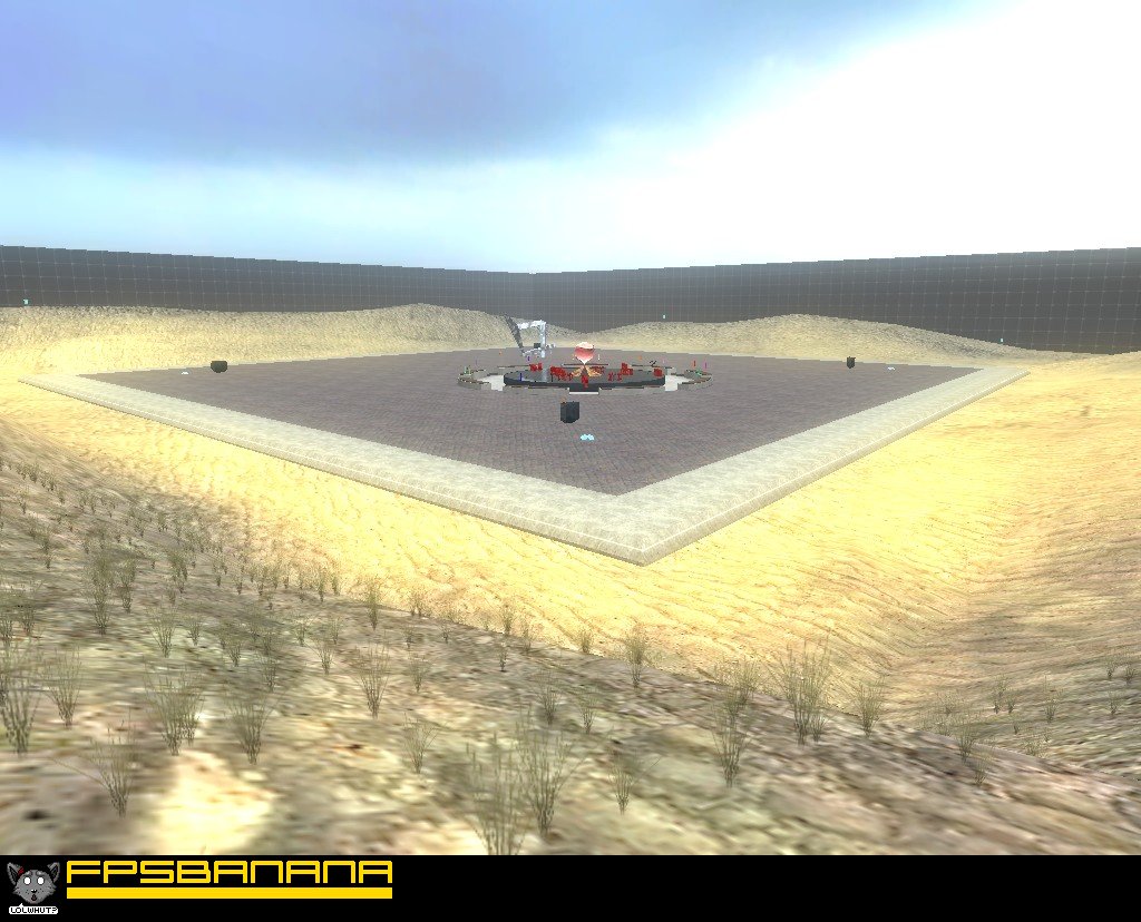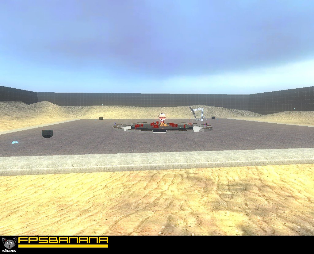 There's a genre of "sandbox" or "build" maps for HL2DM. They generally feature a big open space and several buttons, each which spawns a certain type of prop. The intent is that you spawn props and freeze them in various configurations to make a fort or a building or house or some such, for no reason other than the sake of building something. Unfortunately there's no "freeze" command in HL2DM, so to run a build map normally you need to run either a custom mod with a freeze command or you need to leave cheats on (which usually leads to frequent server crashes). This is the creator's attempt at making a build map that doesn't require either. It allows players to freeze and unfreeze props by pressing the same key they use for opening doors and activating switches. It's also got several devices to assist the building process such as paintbrushes and scaffolding fields and object deleters and whatnot. There are also some toys hidden in the sky as an incentive for people to build pathways to reach them.