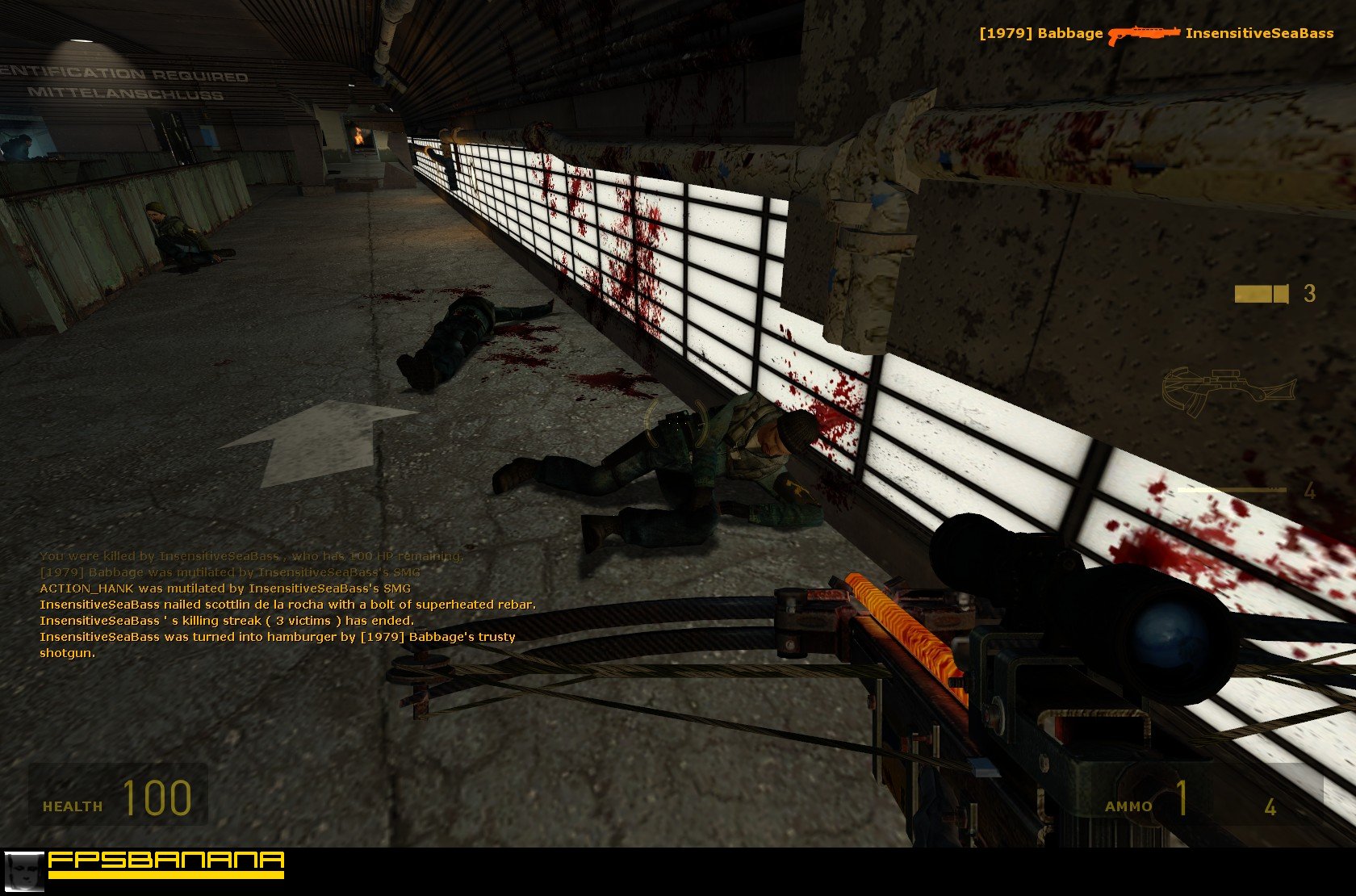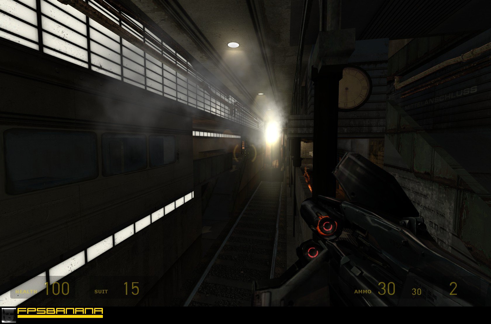 Your chin will drop when you see some of the visual effects in this map.. Train engine smoke will seep up through the cracks in the ceiling, and into the rooms and hallways above.. The lights randomly spew out showers of sparks.. Power outages will cause lights throughout the map to flicker as they come back online.. The panes of glass even explode in the direction you shoot them, not just shattering right there were you're standing.. You can even push a bunch of abandoned cars in the path of the train, and watch the train smash into them, obliterating anything in it's path, killing people left and right. You can even sit and watch while noobs fall into a lightning-spewing incinerator booby trap and scream while they burn to death behind a curtain of reinforced glass! A hilarious amount of gore! Priceless!