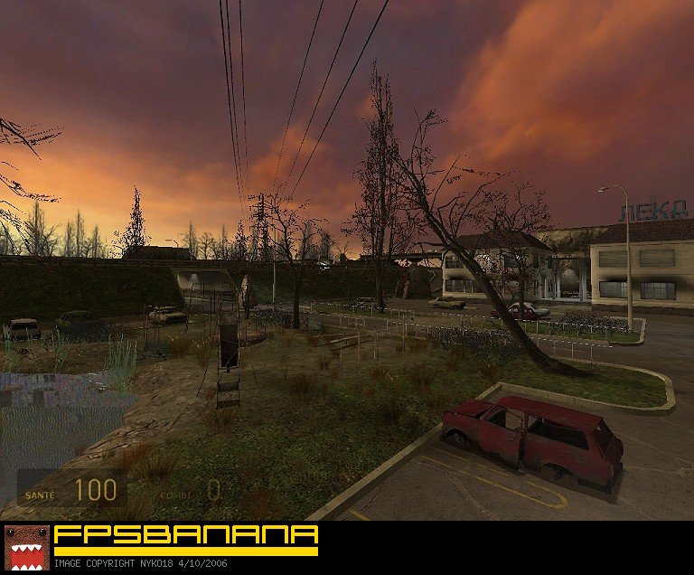 As its name indicates it (in french though), this map takes place in a parking near form an highway. In the middle of the map is the highway, with the cars that it is to better avoid approaching too much... and on each side of the highway, there is some public places to rest yourself a moment.