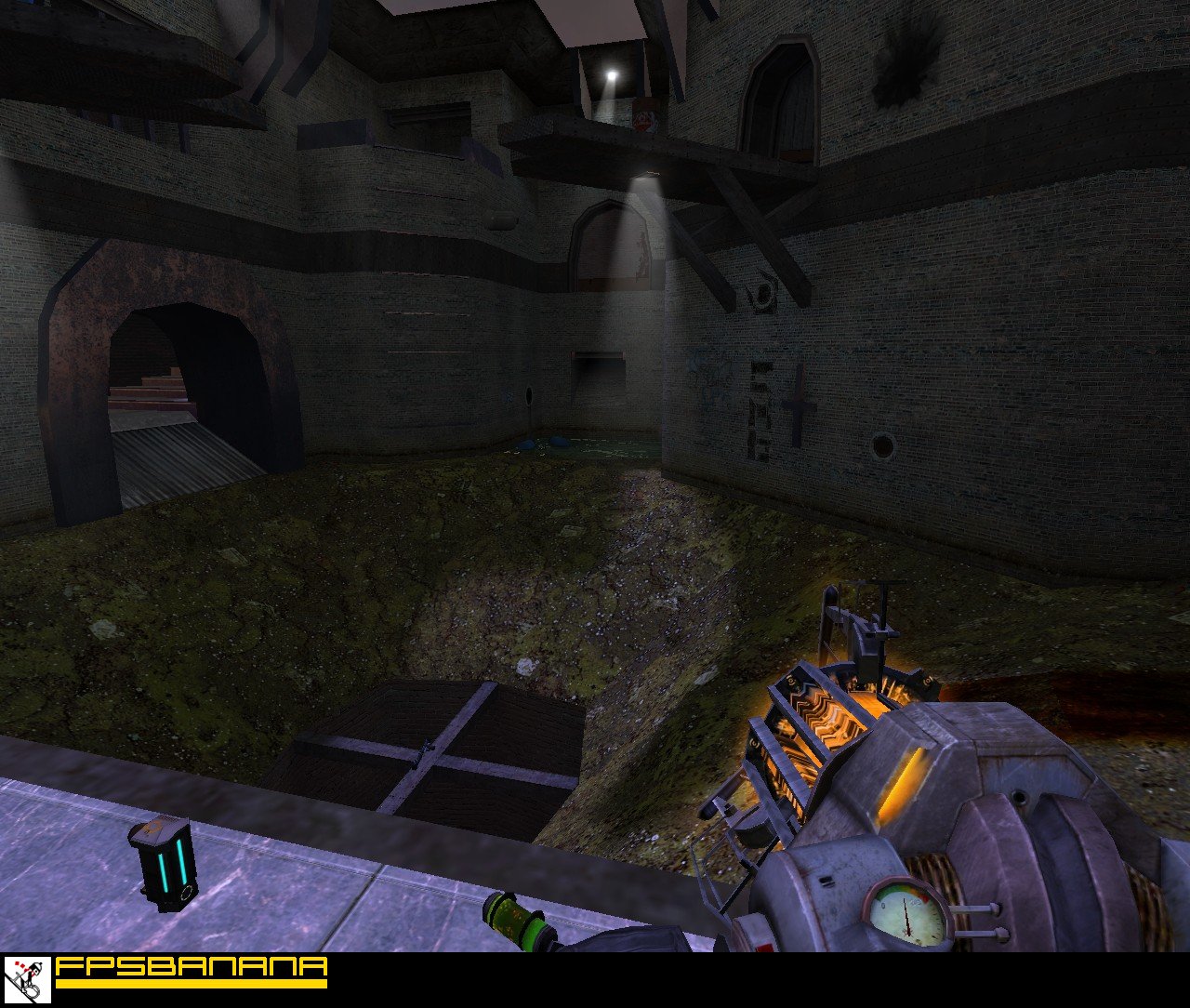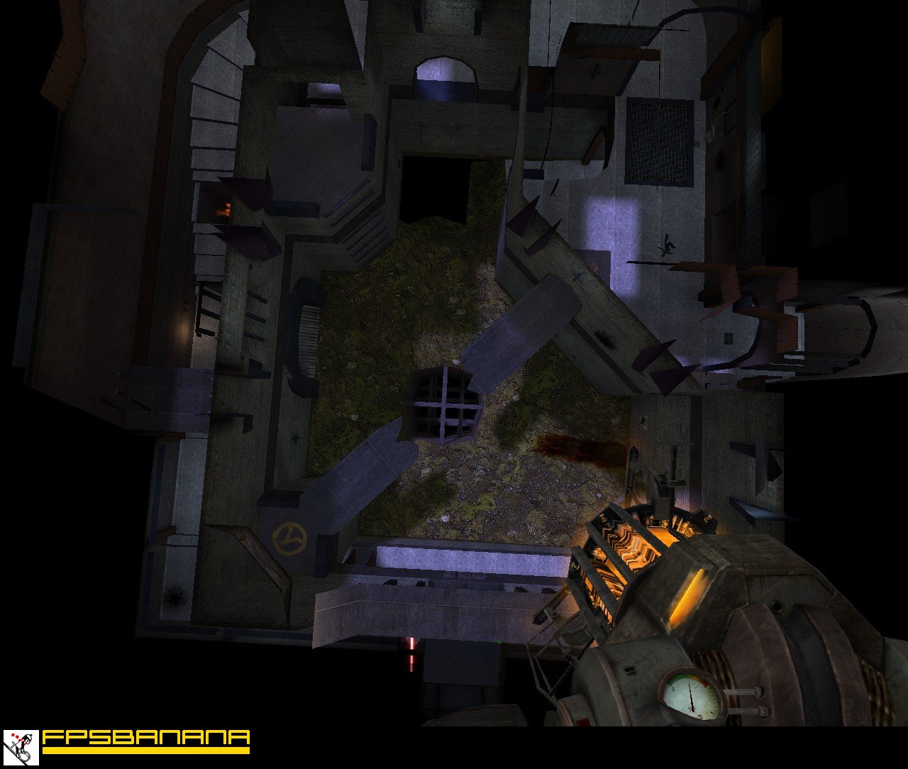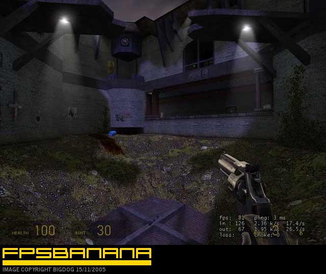 As with dm_pit there are five traps scattered around the map activated by shooting the nearby buttons. There are two secret areas also.