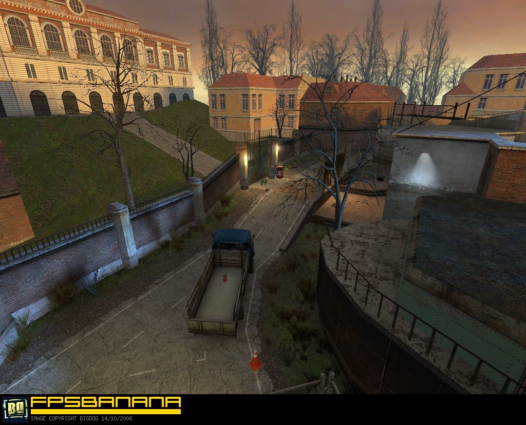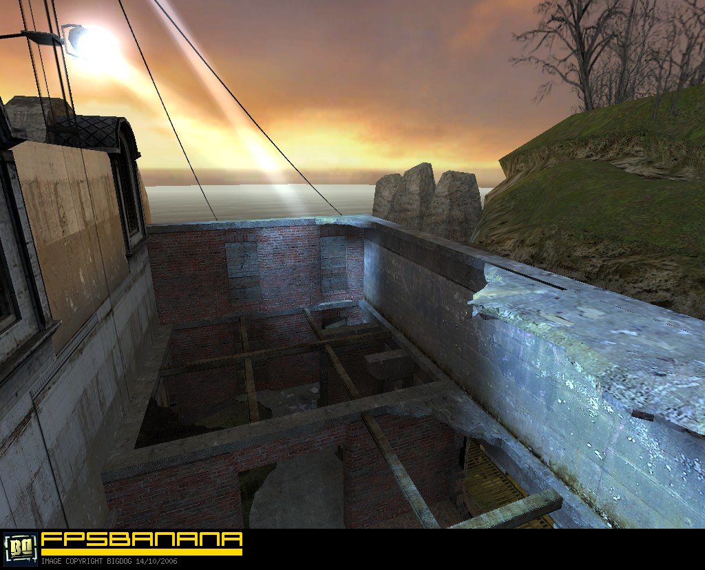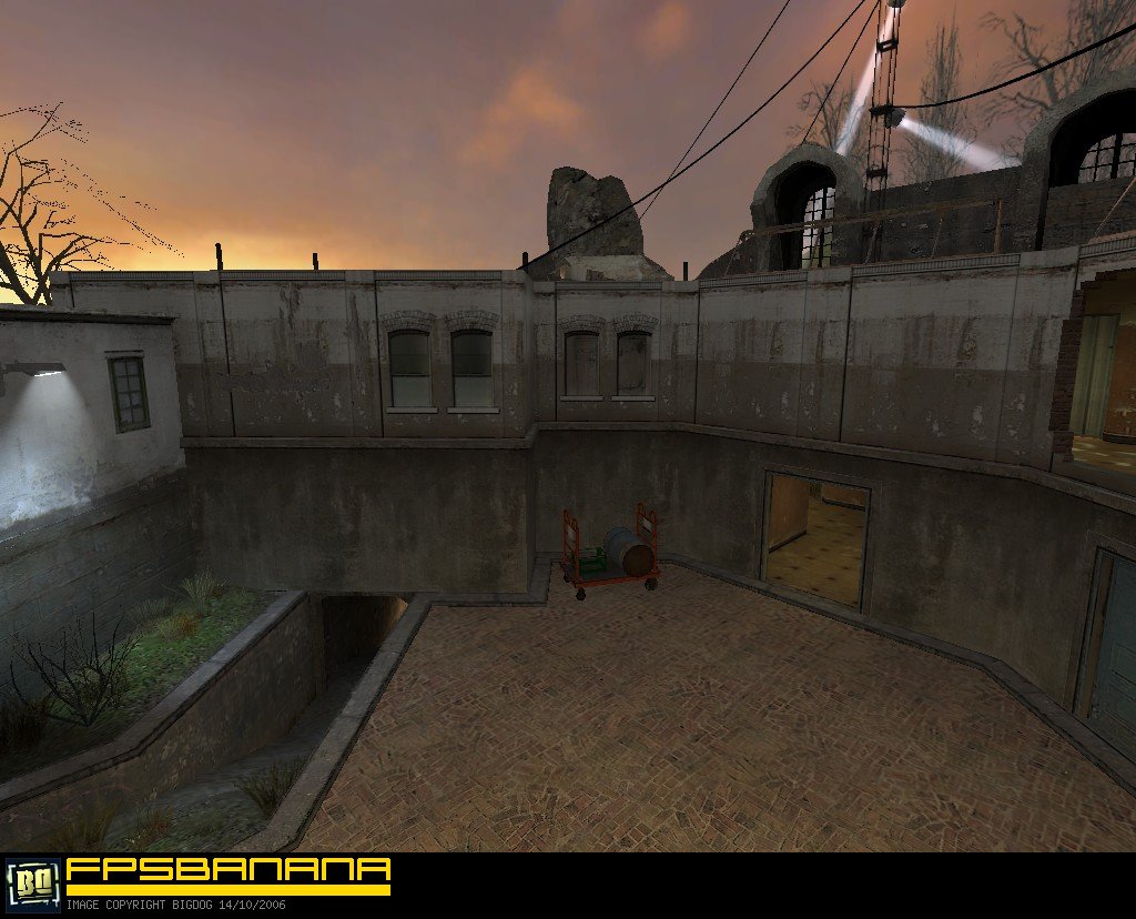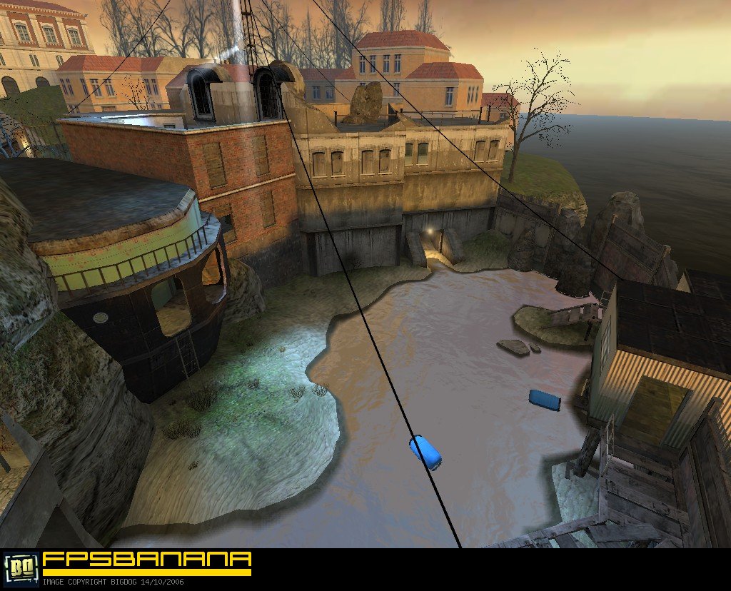 Credits:Built and designed by B. Loboda (slipi) and Miika Lipasti (Pyroquantre). Production stage reviews by Mars Jokela (ginsengavenger) and Uwe Lange (Boblem). The final version was compiled based on the reviews of public beta by Ikka Keranen (Fingers), Andrew Baker (eskimo spy), Kev Edwards (keved) and Joshua Sierra (ShapeShifta). With additional suggestions and bug reports from Tom Edwards (Varsity) and M|k33[K-9]. And finally, props to early adopters - Jason Holton (BadAss Nox), Richard Welp (Kellis), G.P. (VAFFA|OpT1MaL) and Juim, thanks for getting it to the masses.Changelog:- Removed Crossbow for its ineffectiveness- Switched to a more clear water shader for play area and a cheap version for 3D Skybox- Added Slam pickup at the garage and alley- Increased fog distance for more subtle effect- Combined Shotgun and Health Kit/Battery pickups inside the barge- Added hints and occluders for overall performance gain- Changed the rock material to one that is less costly but more fitting- Expanded the central building to cover elevator doors and barge entrance (improved flow)- Switched the alert sound for elevator to one that is available in Source DS installation- Configured the elevator doors to open full-length to avoid stacking- Removed manual clipping around the map to let physical objects travel further outside; all leaving objects are teleported back into play area at predefined locations- Weakened the intensity of red light by the stairs from bunker- Switched places of RPG and Magnum for better balance- Increased global lighting brightness and switched its ambient to a more natural grayscale