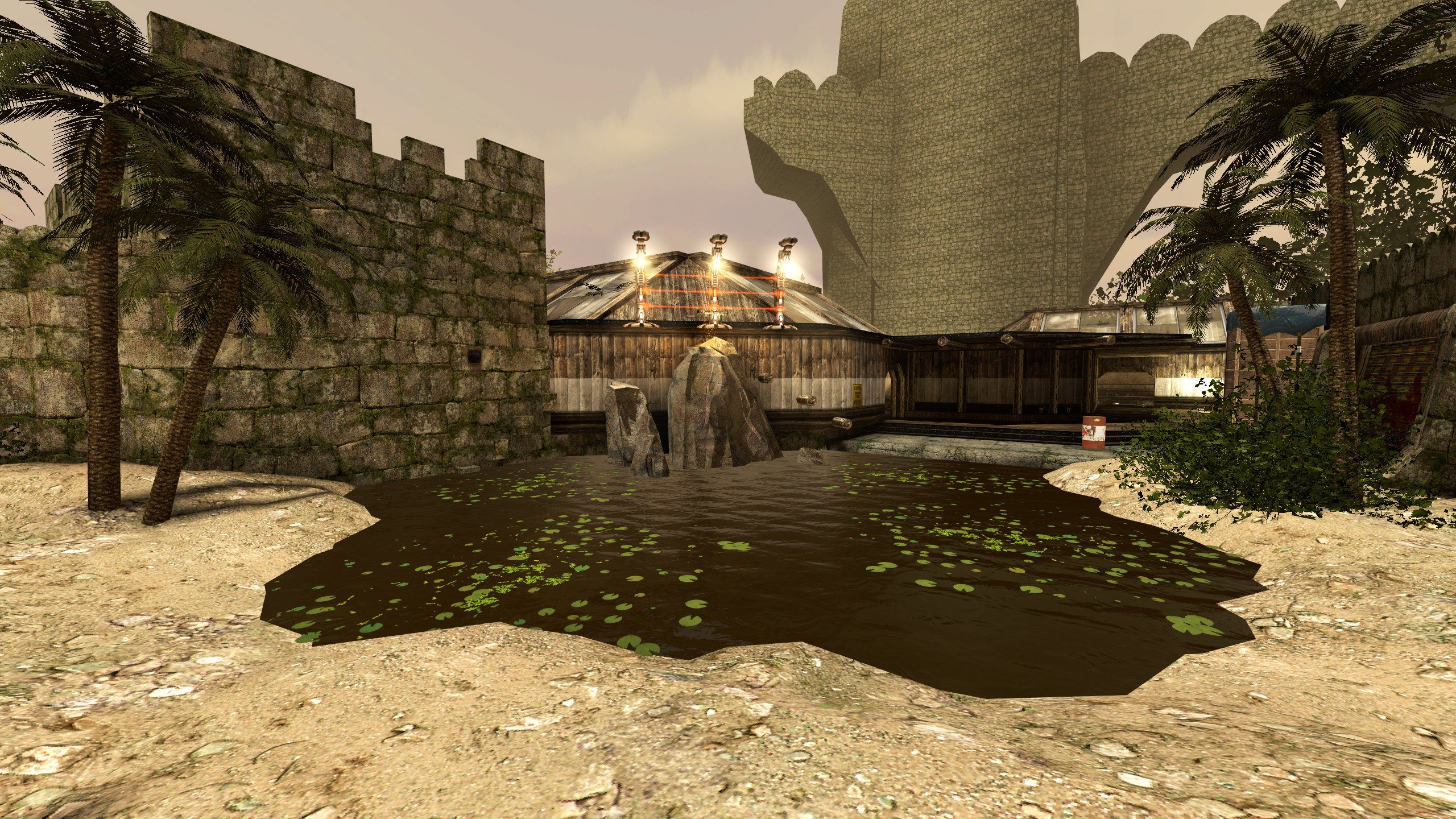 Current Version: B3This is an extended & remastered version of an old map by El MoroesI enjoyed the theme of the map but felt it was too small and wanted to expand upon it. There is a new area with military vehicles and a supercharger, another atrium with more weapons, connecting hallways, and an outside area with an RPG that spawns in every 60 seconds up high on a rock