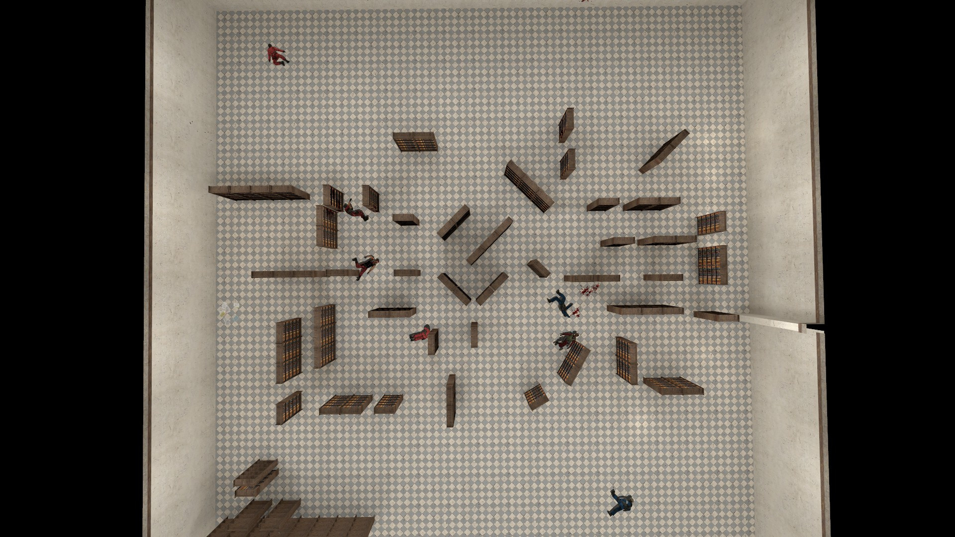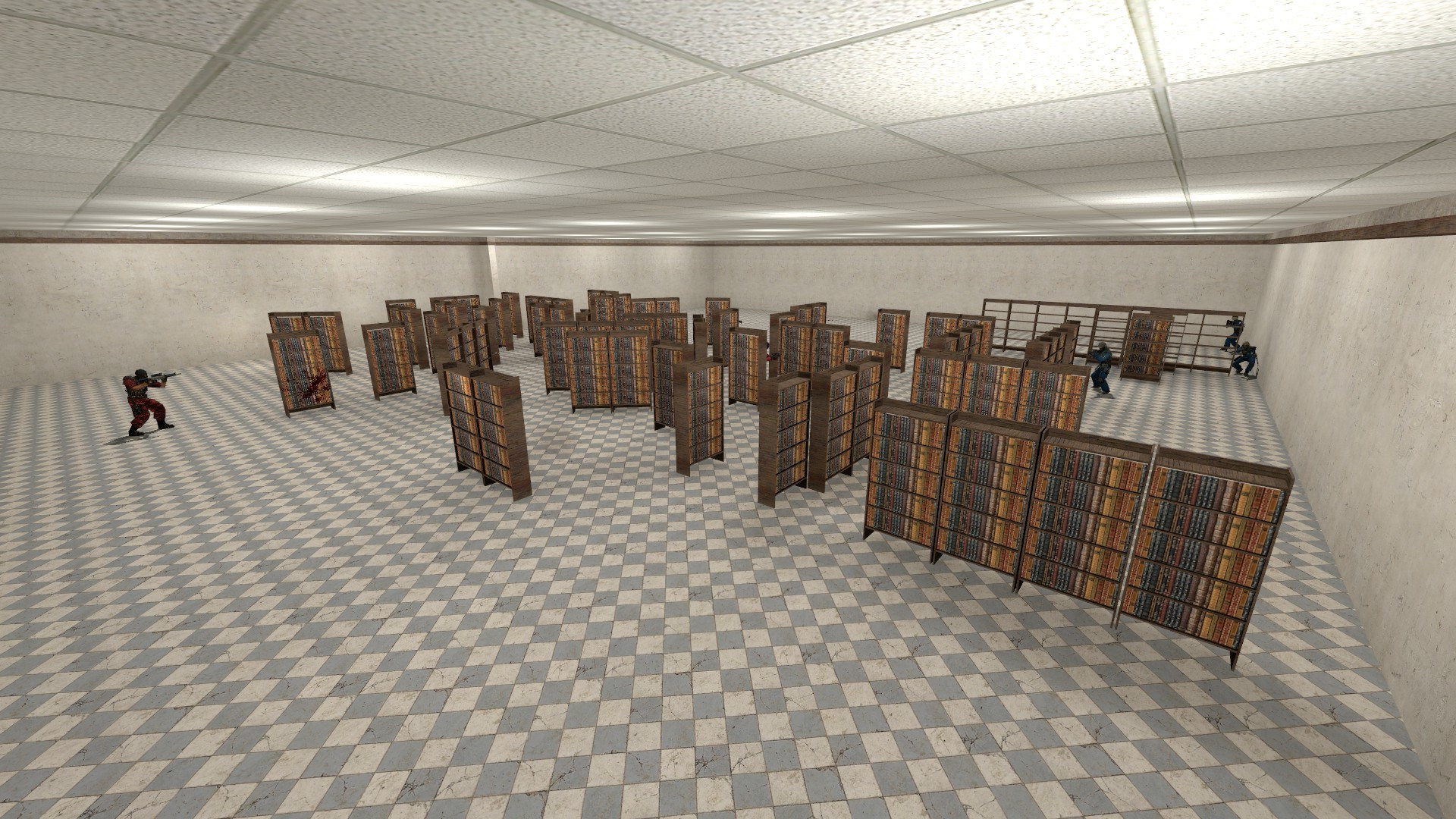 The map is a library with a C4 site in the middle. The map's author is unknown, and the models and textures are lost. The archive contains both the original and edited versions + VMF.