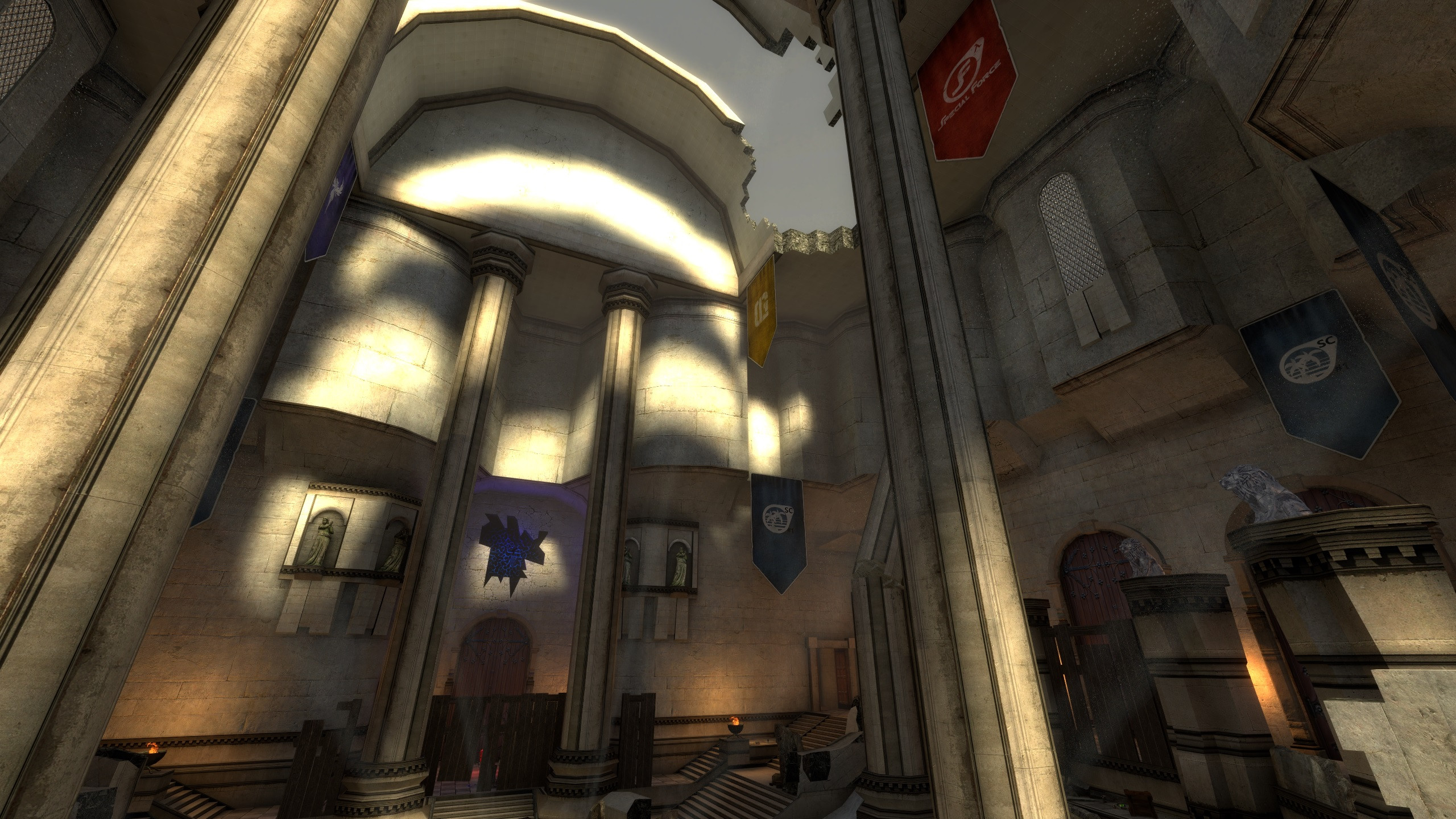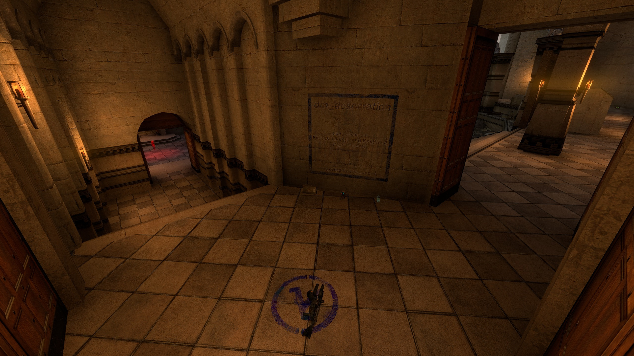 This Map was ported from the HL2 Mod: Pirates, Vikings, and Knights IIAll Credit to the developers of that mod for this wonderful map!from lts_cathedralUpdated RC2- fixed func_breakables and clipping issues- added fastladders to the center lowground area- fixed the red armor to be able to be "null" gathered- rpg and other bugfixesThis map has a large pit in the middle, that can turn into a portal to access the rpg by pressing a lever behind the angel statue. Smaller, semi-symmetrical map that offers fun gameplay. There are 2 powerups on the map giving you health and suit/armor.