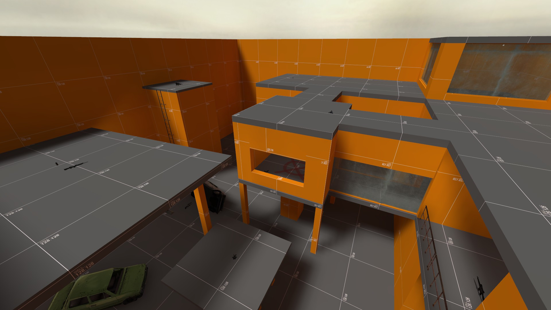 Small "arena" map for small count of playersFind dropped guns scattered across the map and kill the other team to win the roundOr plant the bomb at the center of the map-----------------------------------Player spawns are pretty bad because there can be moments where two players from the opposite teams can spawn in the same locationThe map is made of dev textures because i'm lazy to texture itAnd also the lighting is pretty bad so yeah