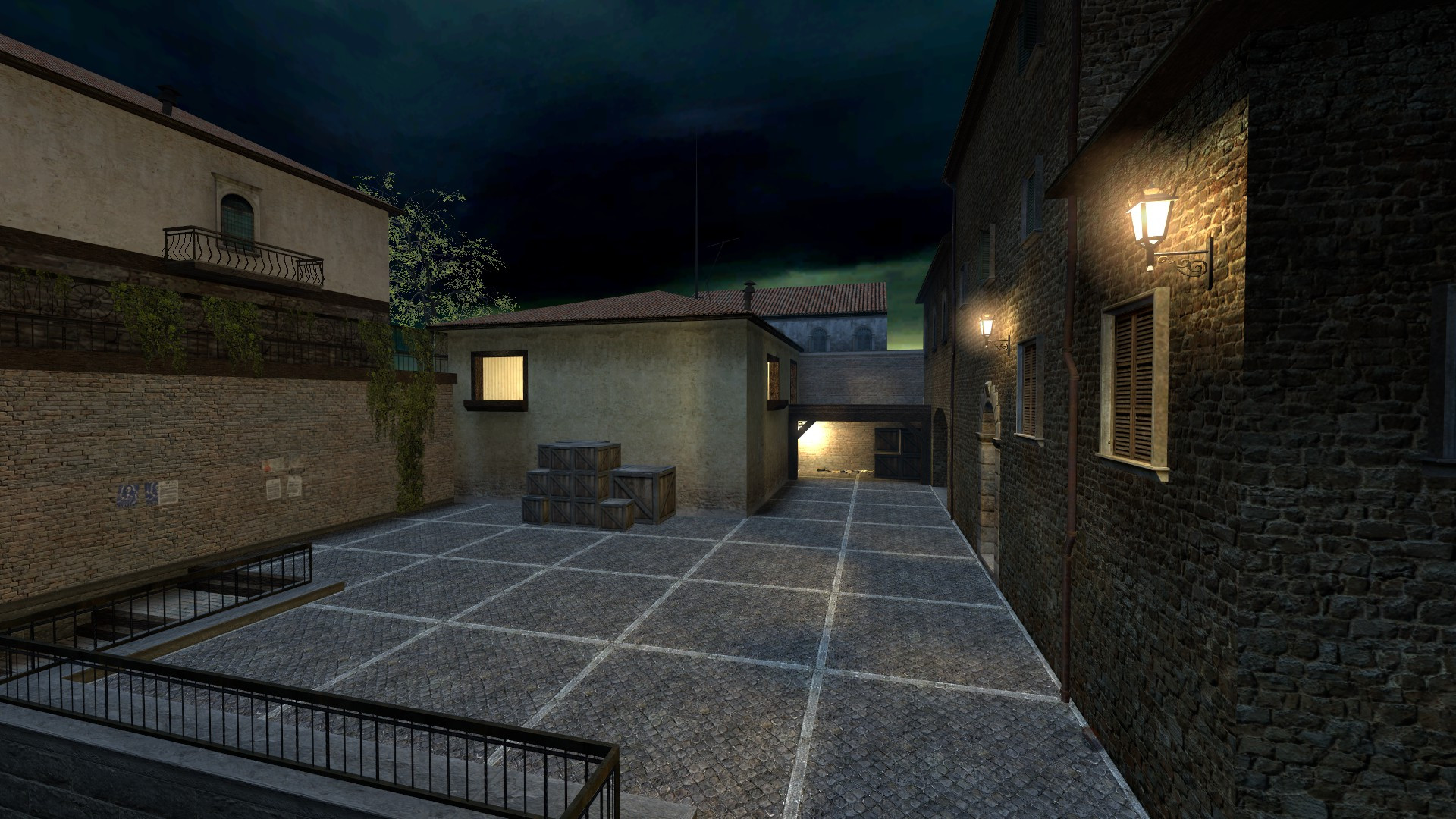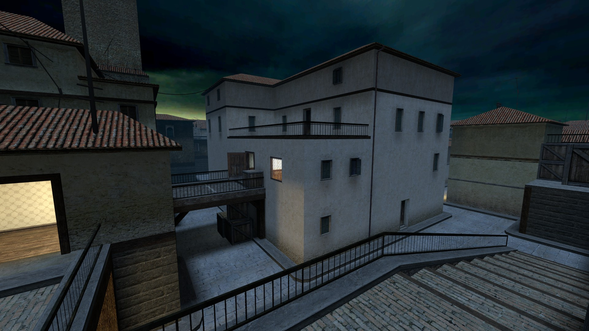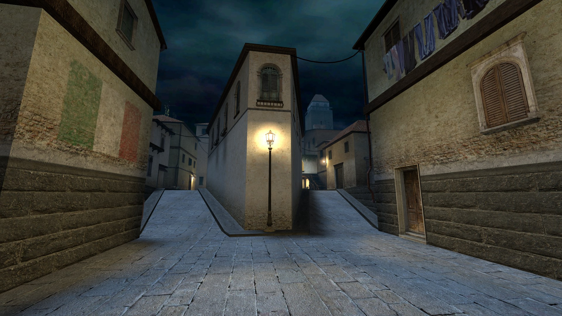 Dark/Night version of cs_italy, the main differences of which are the changed skybox texture and lighting. All lamps on the map were turned on for better visibility.