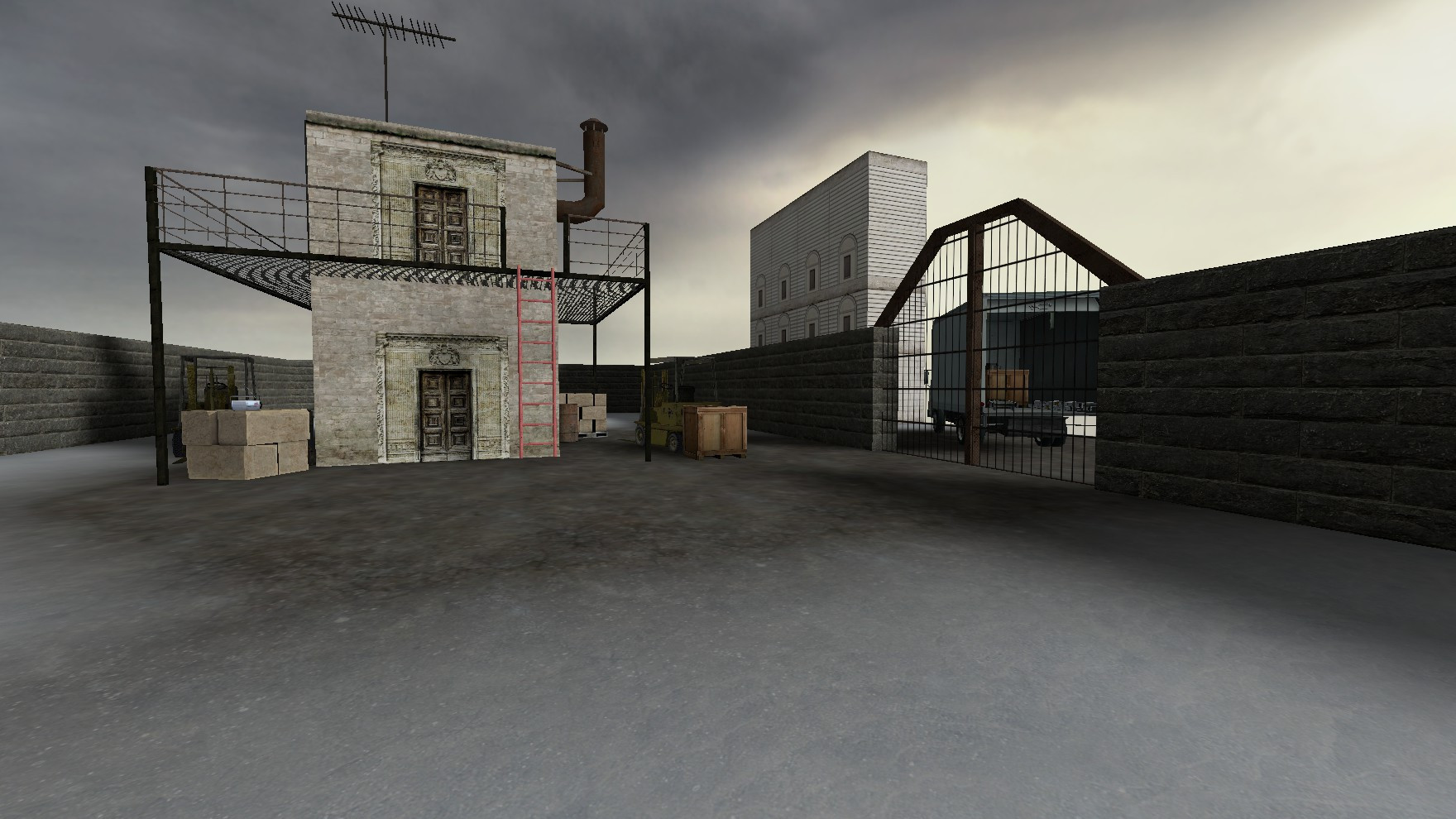 Hello!This is my first "professional" map!This map features a central, unfinished 2 story building, where the action takes places. The map has plenty of fun places to stab people from, you could sneak up behind them; use the building to flank them; drop out of nowhere; charge right in; or get them from around a corner, just try and experiment and stuff.Check the screenshots for more info!