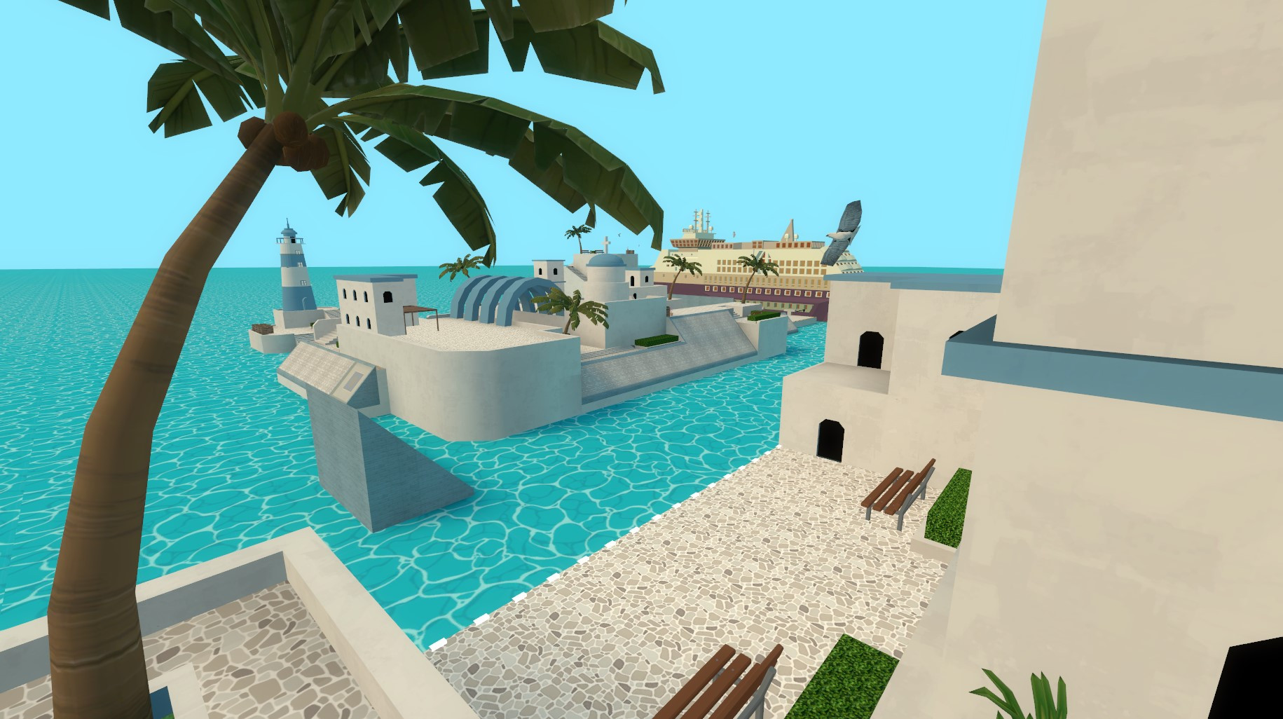 Surf_santorini ported from CSGO to CSS!A fun little Tier 1 map taking place in the ocean amongst animals and palms. Map features 5 bonuses aswell all made by myself. If birds cause issues do this in ur stripper file: filter: {"model" "models/props_critters/seagull_group.mdl"}Zoners / admins:Same as all my maps. Trigger_multiple.mapstart - mapends2s s3s s4s s5s s6s s7s s8sb1s b1e, b2s b2e, b3s b3e, b4s b4e, b5s b5eHave fun guys!Yours,qúe.