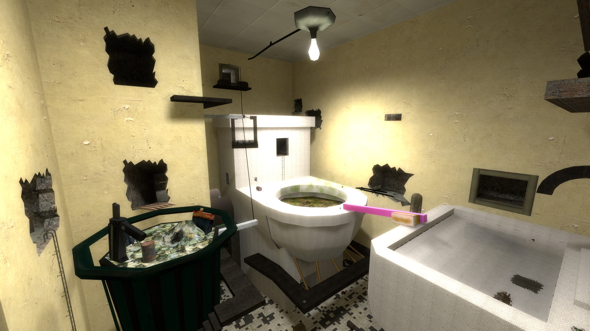 A giant bathroom in HL2DM! Credits are in a secret room that requires noclip.