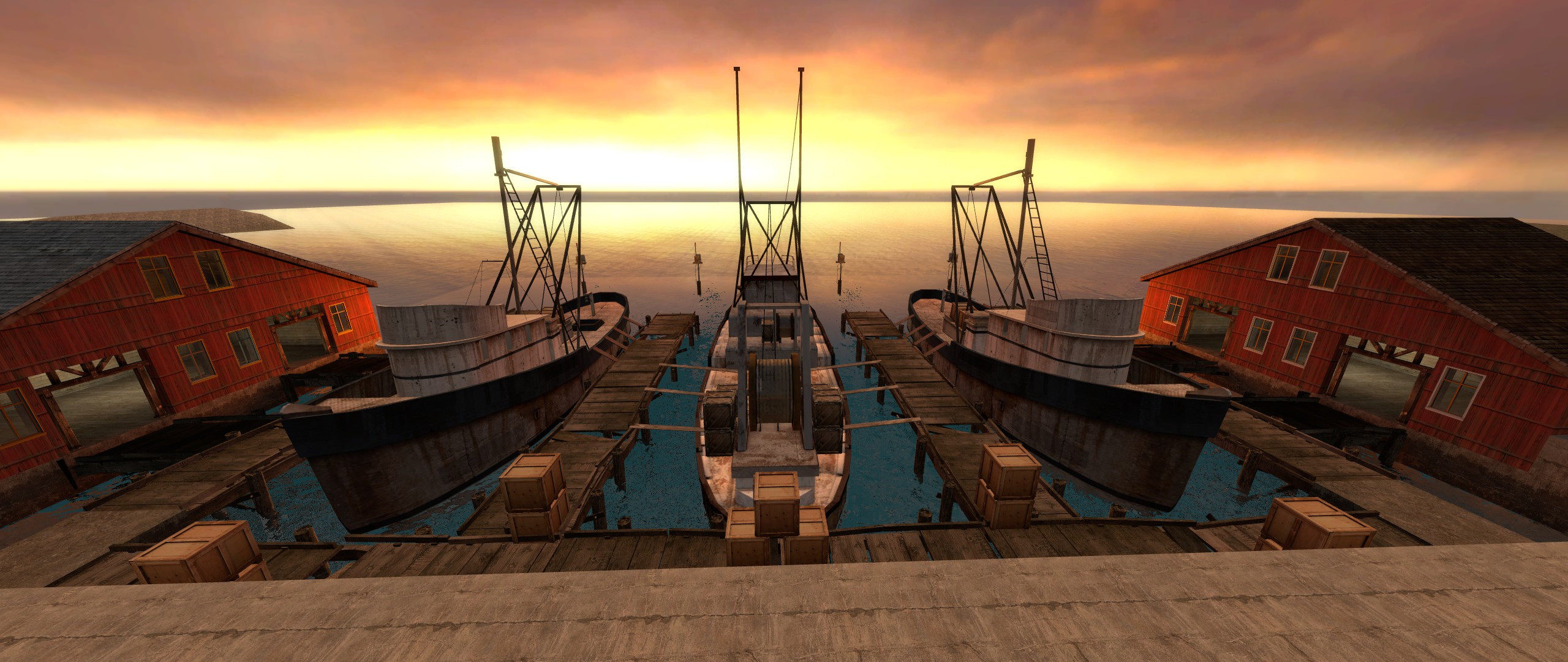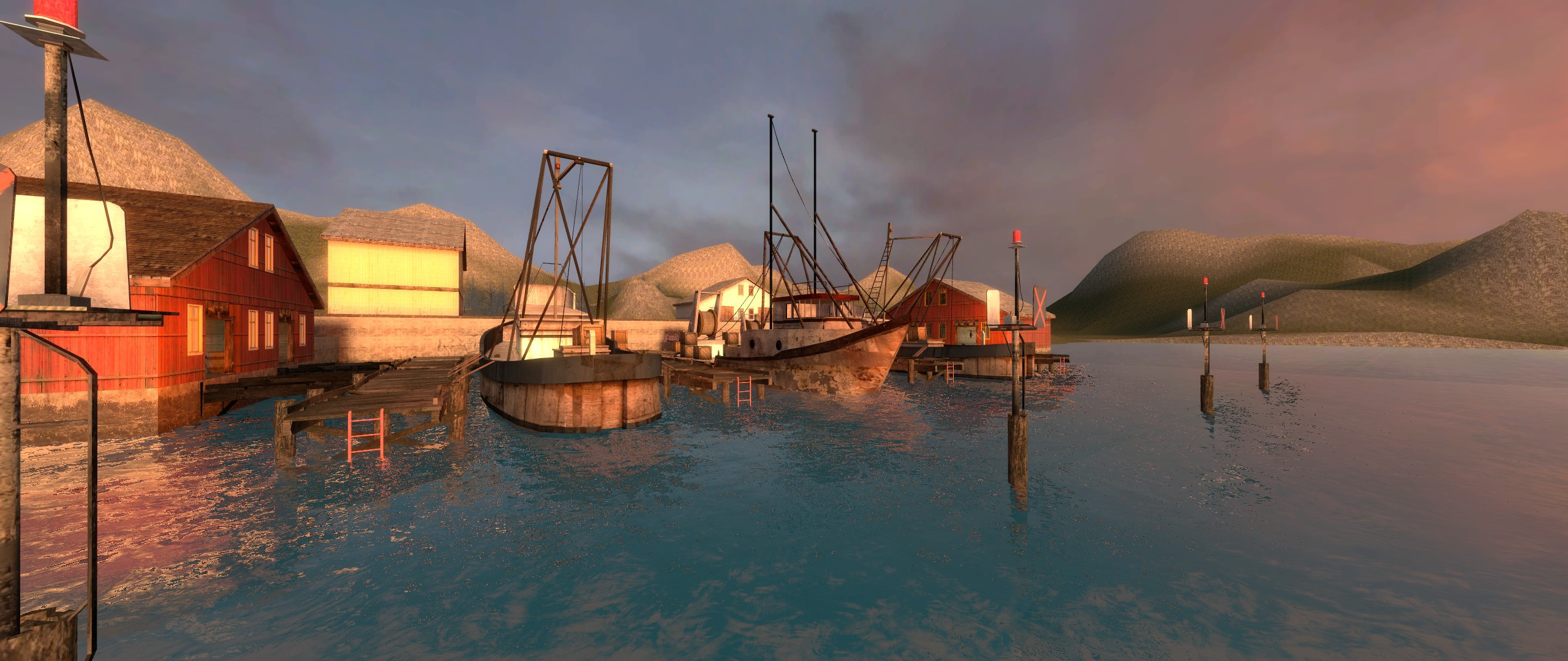 A beautiful summer evening at a small port on the coast of Norway, gunfire erupts across the docks and sparks fly as bullets tear through the port and bow.Terrorist poachers are raiding the port to steal large fishing boats for business, while Police are already happy with the deal they've cut for tuna with the real owners!Scenic Gun Game map set in a port.-Water does not kill-Custom collision box for blue boats and docks because theirs... sucks-Large 3D skybox-Ambient background noise-Buyzones for non-gungame use