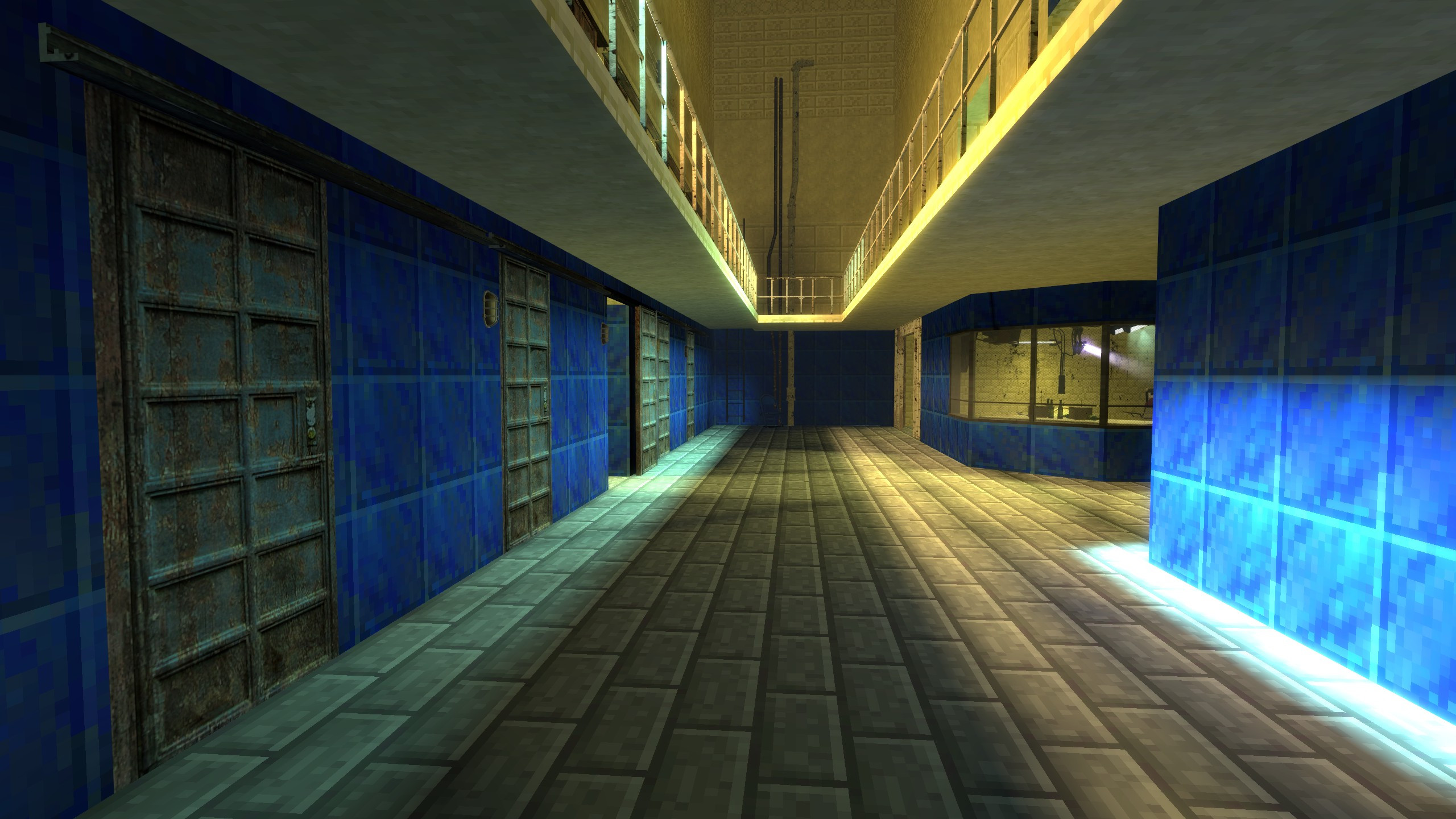 Minecraft Retexture of HL2DM Lockdown map.This project took a different angle at Minecraft’s visual aesthetic from my previous project MC Island. Instead of importing a blocky-style Minecraft map I’ve opted for Retexturing of classic Lockdown map from Half-Life 2: Deathmatch.This joyful process has proven to be repeated by me a number of times in the next projects. I’ve even given this process a name MCRTX standing for… you probably guessed it: Minecraft Retexture. It was quickly followed by my next Minecraft Retexture of DM Steamlab map.It was also my first map compiled with HDR (High Dynamic Range lighting) – giving the player an illusion of an eye being getting used to change in lighting conditions of its surroundings.Those 2 maps: Lockdown and Steamlab were in my future creative endeavors going in pair – subsequently undergoing the same visual processes like updating them with High Dynamic Range Lighting, or giving them High-Definition Textures.Source version of Minecraft textures used in this map created by Marca.Minecraftia font used in this project was created by Andrew Tyler.This is a Minecraft Retexture Project made by JzC in 2014.You can find more of my projects and edits on my website: 3Dism.