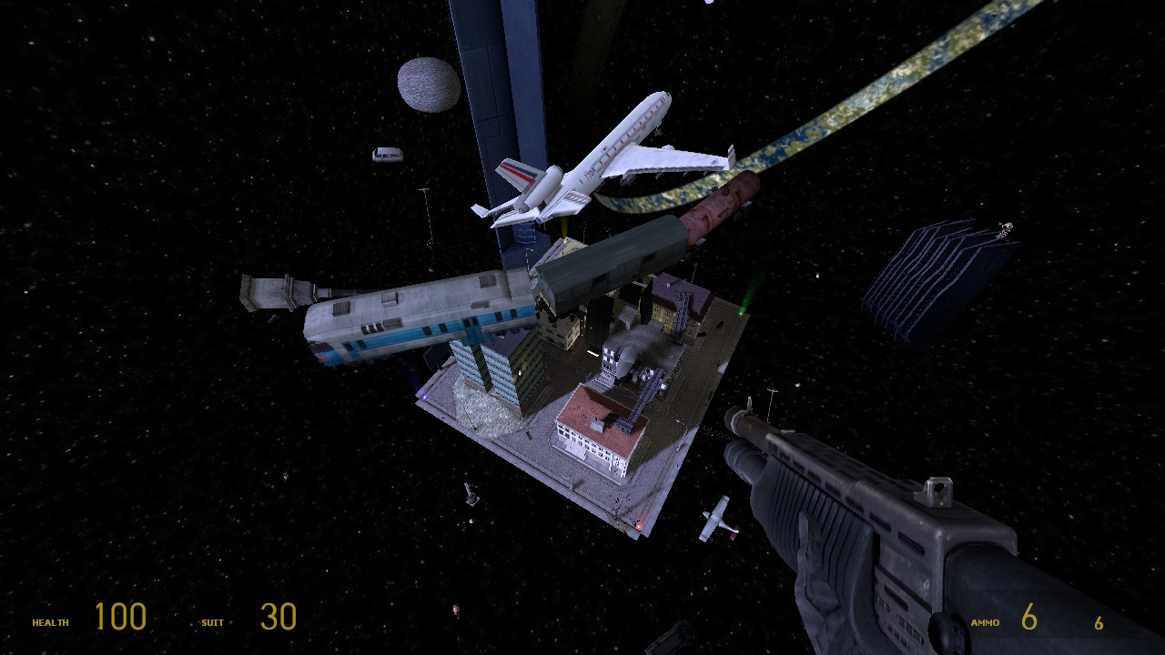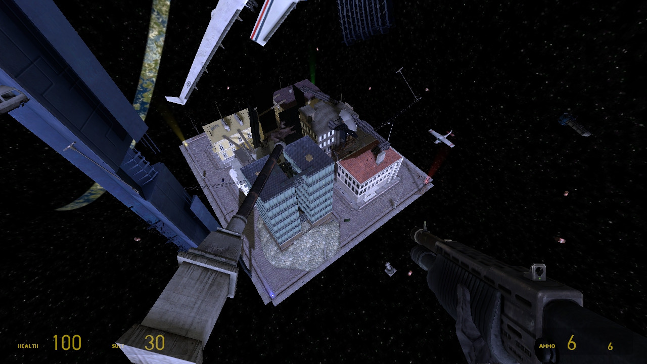 Jump into space to fly around and orbit the map.