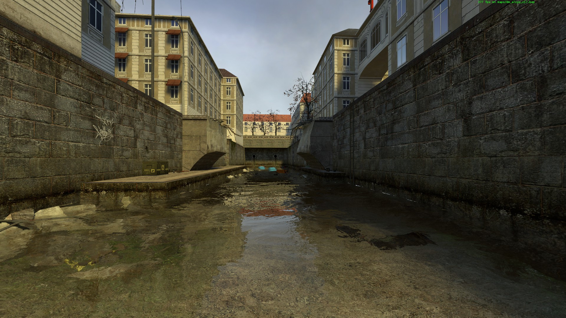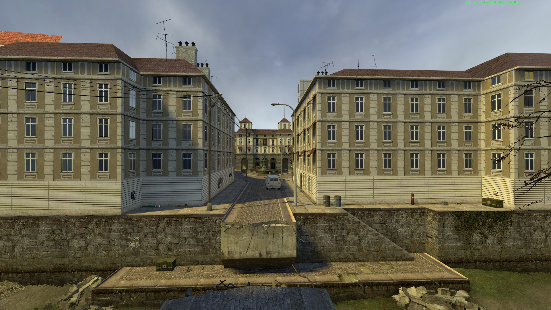 This map is derived by one of the hardest Half Life 2 levels. All the combine structures removed. Only a couple of small fires remind us that there was a big battle. Ladders and gutters are climbable, to reach the small terraces. Added a canal and made playable throughout an area originally just scenographic, with running and deadly trucks and vans. Moving clouds. Pressing the button near my logo, some jazz. The Americas Army Hummer model was ported by ILLKID. 16 spawnpoints, weapons and supplies in abundance. No secret to find out, no RPG. I hope you like it. Good game. AlcyToronto