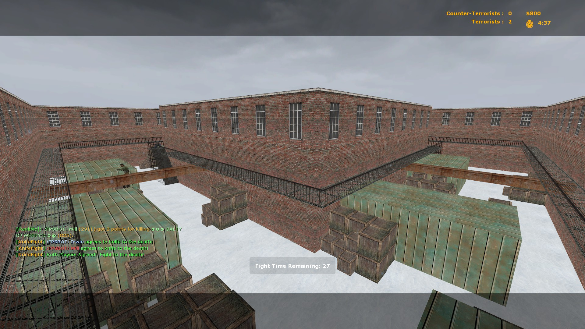 Welcome to my second map, White Factory. No objective of rescuing hostages or planting bombs, this map is just a bit of fun to practice your aim with your friendsThere are lots of boxes and panels to hide behind and an upper level to gain advantage on unsuspecting enemies on the floor below. The snow doesn't just make it look pretty it also gives you constant paranoia every time you hear a crunchy footstep.I hope you all enjoy this map as much as I do.