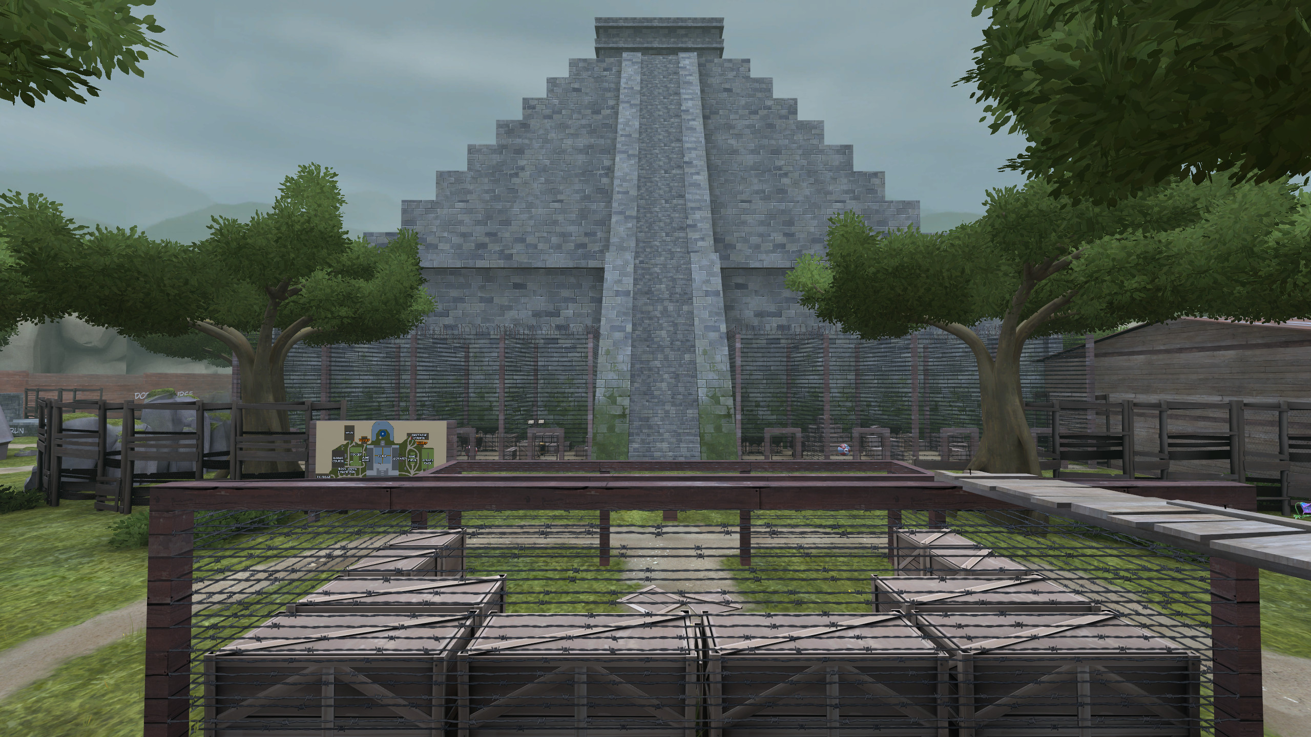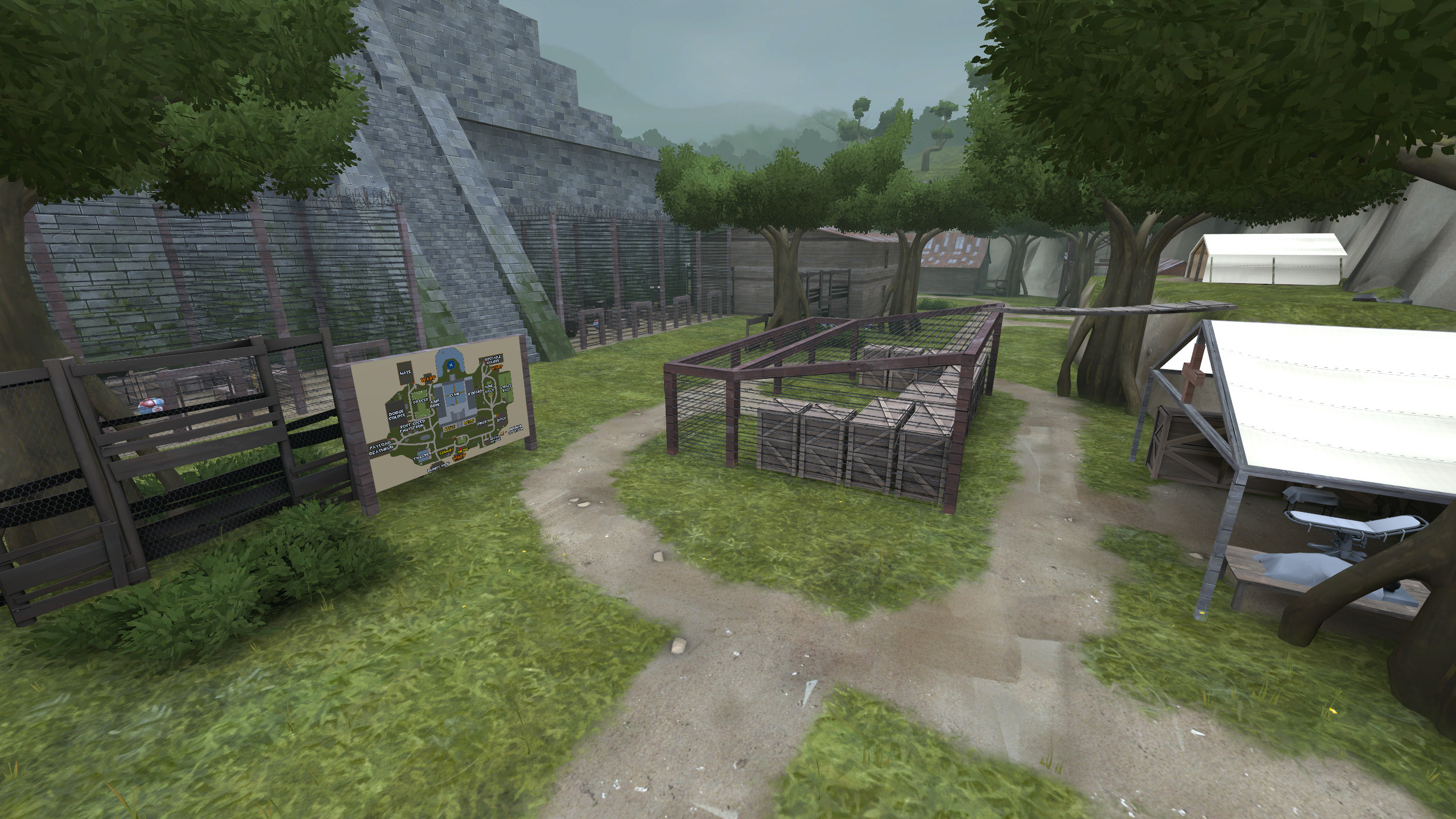 A remake of my first map amazonjungle. I was dissatisfied with the layout and design of the map, so I redid it. It was going to be the v5 update for amazon, however there are far too many changes for this to be a simple update so I'm re-releasing it.This map utilizes a lot of vscript, which was just added to TF2 back in December 2022. It's possible there will be unforseen vscript bugs, since vscript is far more complicated than regular map logic, however I believe I've thoroughly tested it.The minigames are mostly functionally the same as amazon, including returning games:- Obstacle Course- Strafe Race- Minefield- Jeopardy- Disco- Soccer- Dodge course- Maze- Payload Deathrun- Climb- Sweeper- Jump ropeThe following games have recieved significant overhauls:- Boss fight- Speedrun- Bunnyhop- (new) Diner- (new) Battle RoyaleFeatures:Map features easily found ammo secrets, as I believe secret ammo should be able to be found by any player.Map features the returning escape secret, although the time it takes for the helicopter to arrive is longer, since it takes longer to traverse the map. There are still hints present to help guide you to escaping!There is an expanded admin room with a multitude of buttons to modify the round in fun ways (the admin room is located on the second floor of the house/diner). There is a minigame location for battle royale (hunger games), which allows you to play it without noclip if all reds are in the teleport.There are at least 10 attaching secrets, and a multitude of other secret buttons and areas!The map forces +use to be enabled on the server, regardless of the server config.Information for server owners:report_entities (2 players, round start): 1167sv_dump_edicts: 1199CellsNames: cell_doorCellsButton: open_cellsBlue Warday Coordinates: X 3200, Y -2624, Z -168Red Warday Coordinates: X -5248, Y -448, Z -184Red Freeday Coordinates: X 0, Y -1728, Z -8Music credit can be found within the map