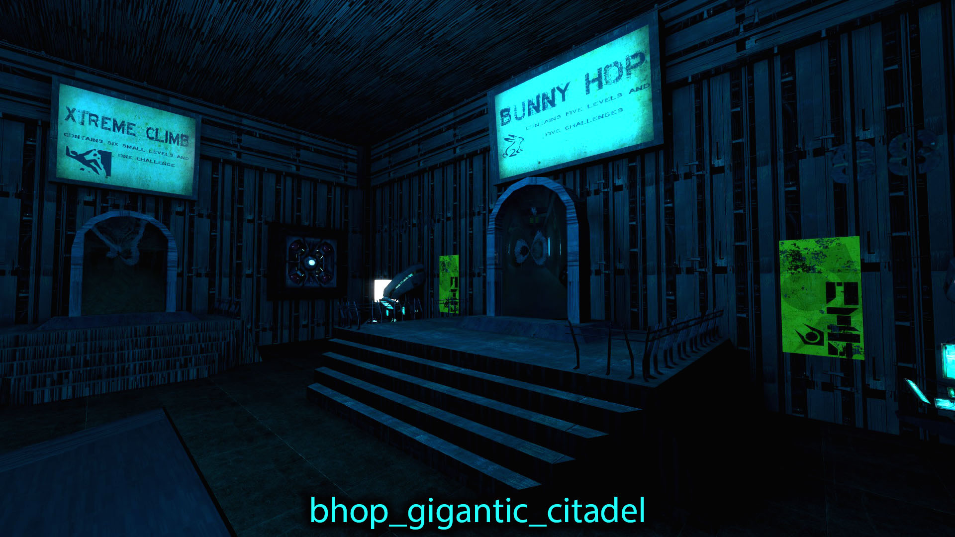 bhop_gigantic_citadel_v3Map consists of main bunny hop part and climbing part and has a lot of extra content.Bunny Hop Area Info5 Levels5 Challenges3 Bonus LevelsLJ Training Area3 Challenge Unlockable RewardsXtreme Climb Area Info6 Levels1 Bonus Challenge