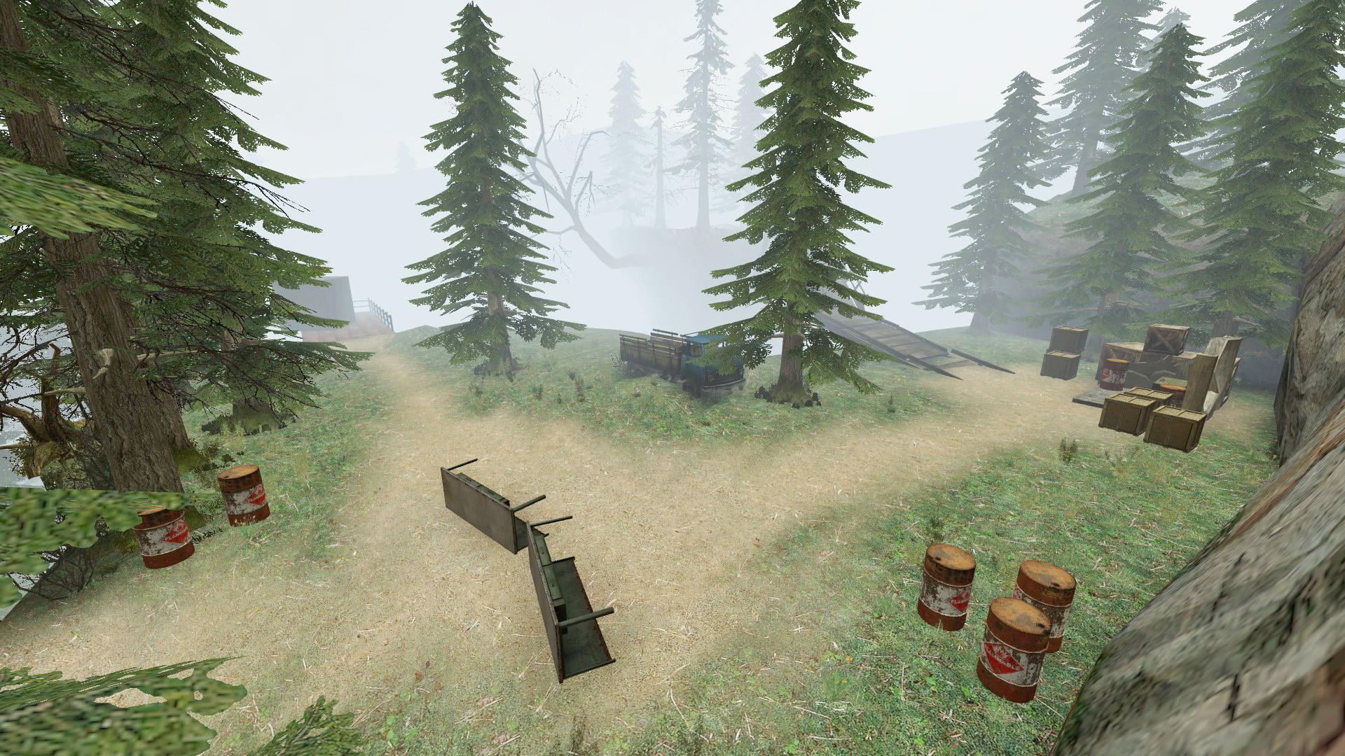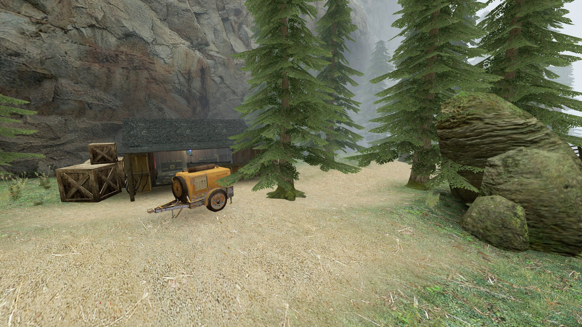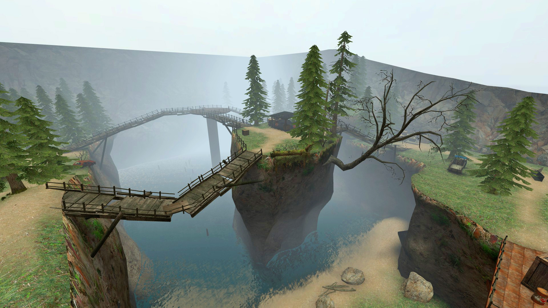 The original idea was taken from zombies_big_mountain_river_2. The whole location was designed from from scratch. The map is played every day on our zombie riot server, join us and you'll have a lot of fun.