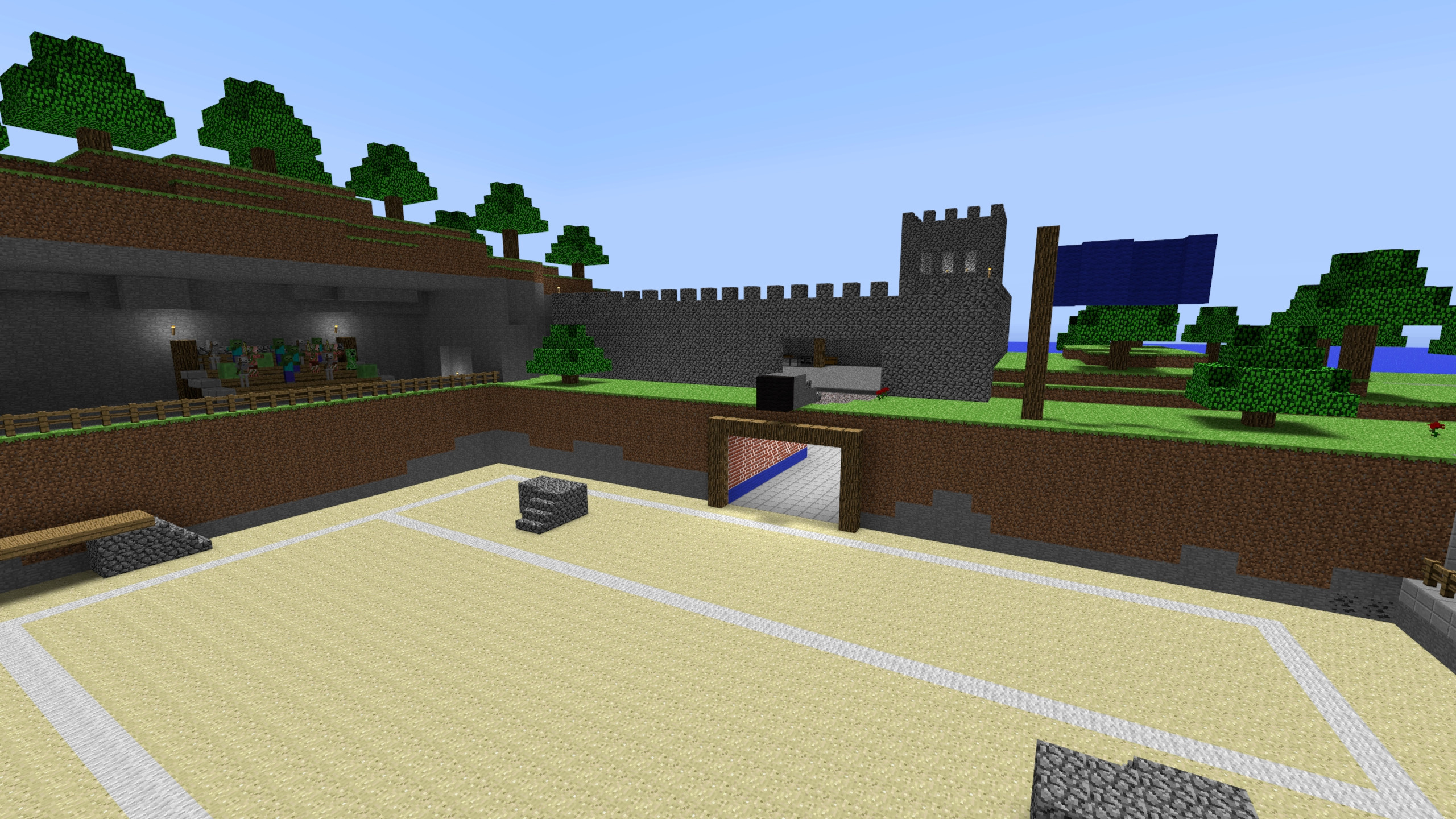 A simple dodgeball map with a semi-interactive crowd that will (should) watch the dodgeball.I don't play much dodgeball so I apologize in advance if the arena is garbage.Requires a dodgeball function to play