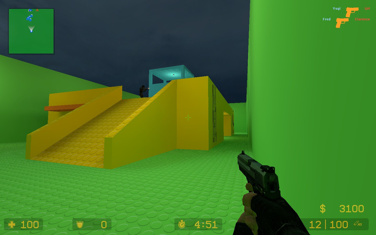 A small sized map suitable for gungame or deathmatcha bomb defuse zone is established inside the tower on groundsniper spots16+16 spawn points