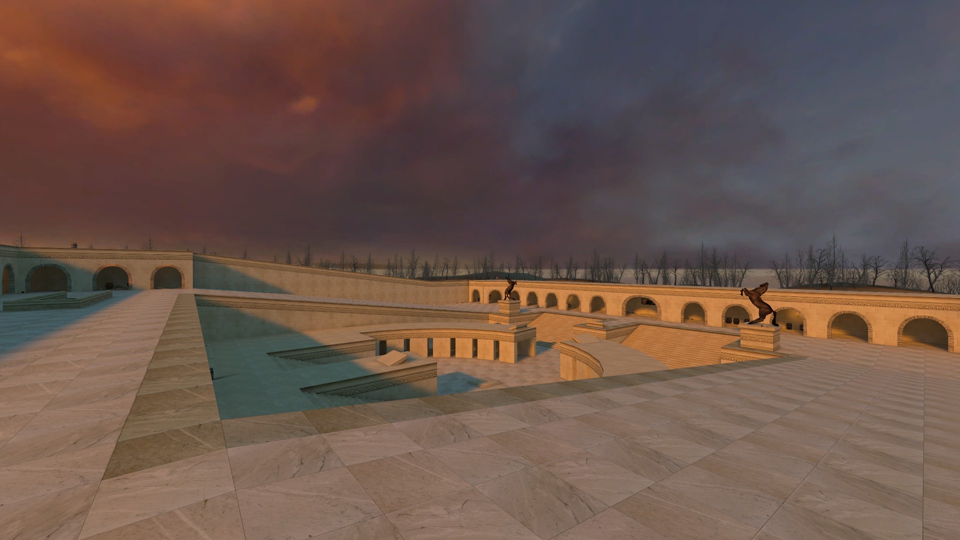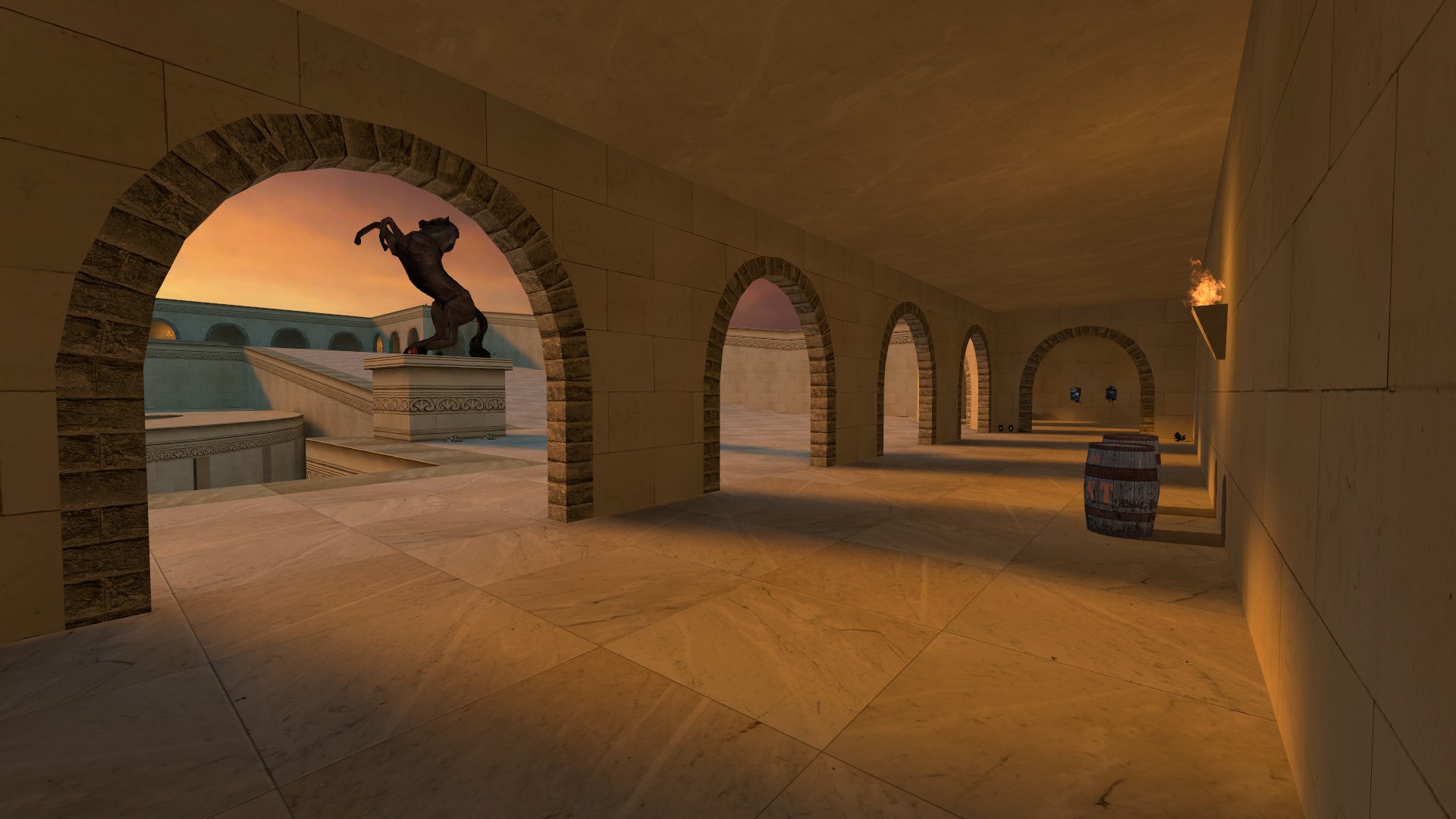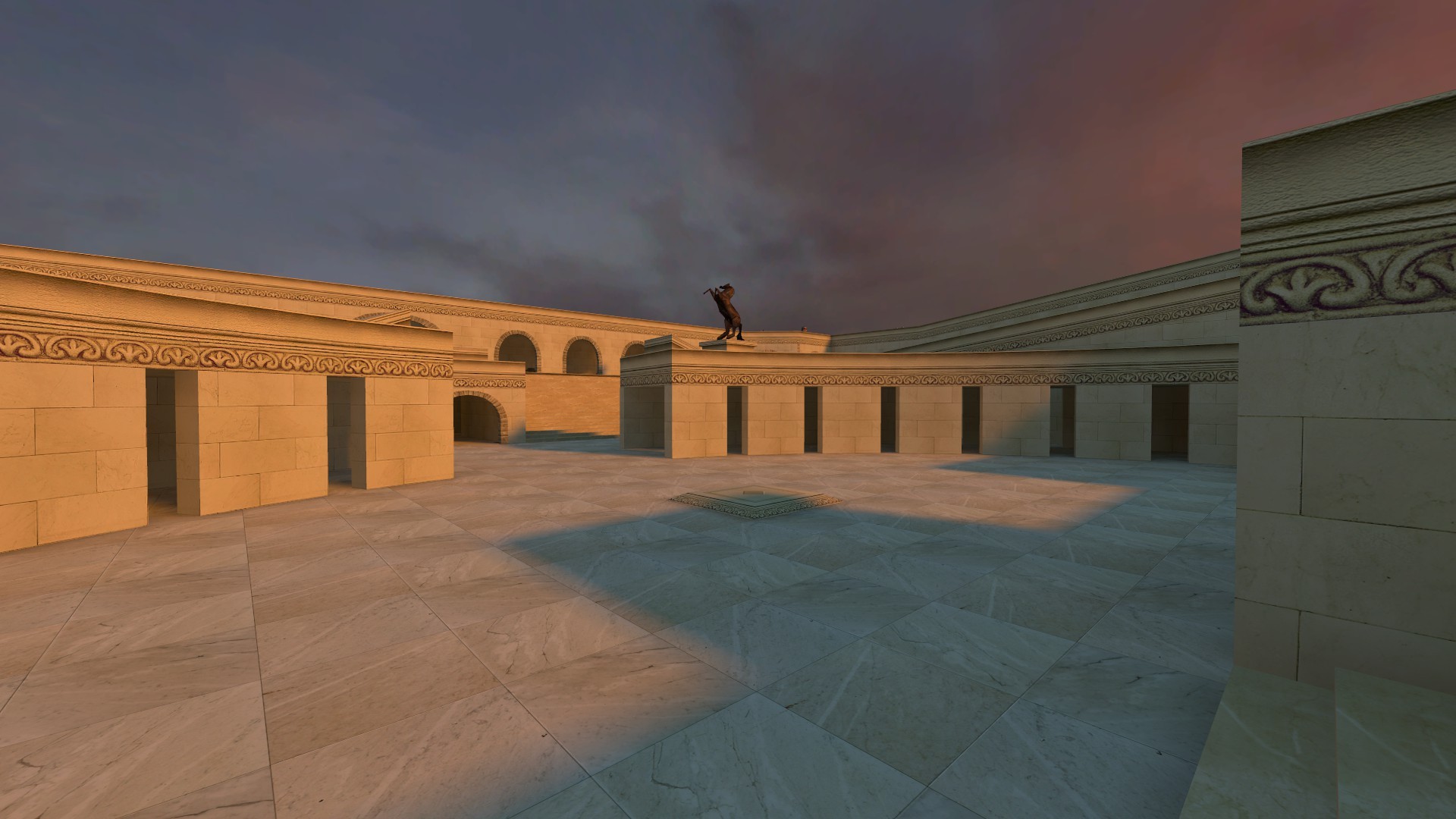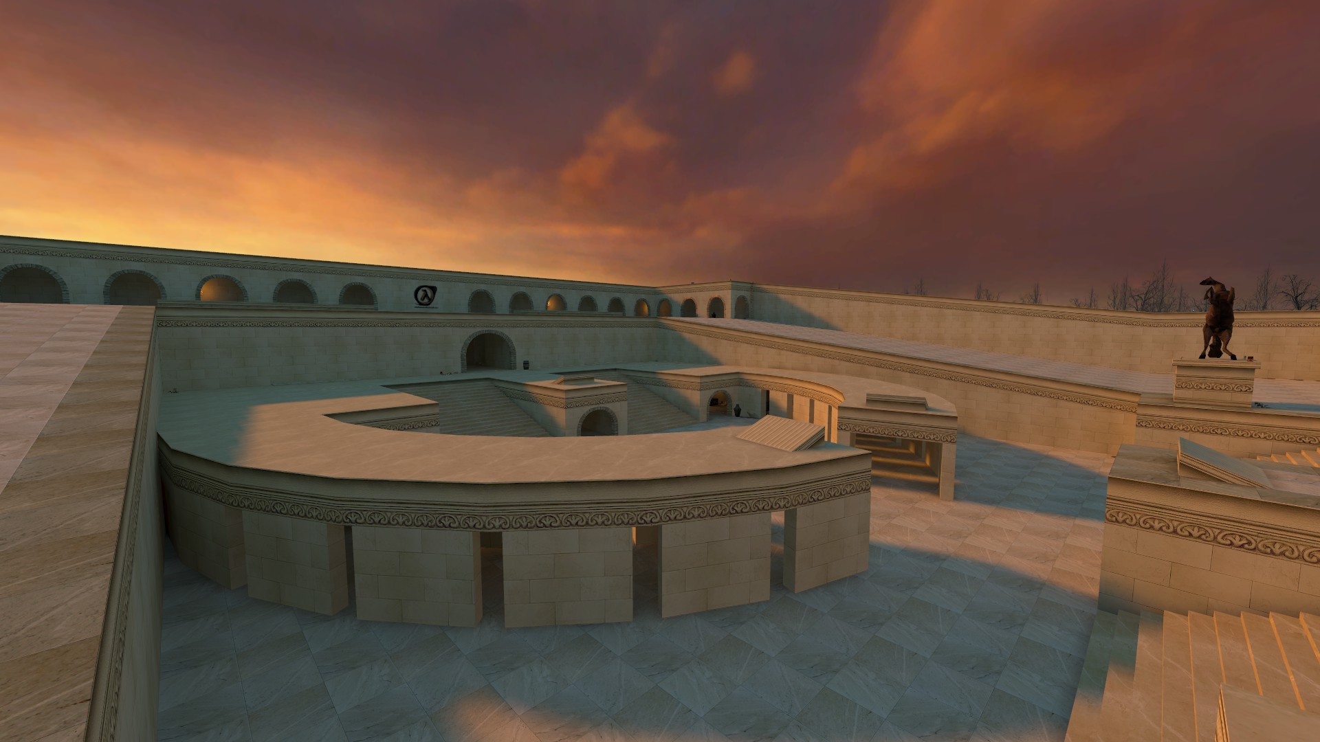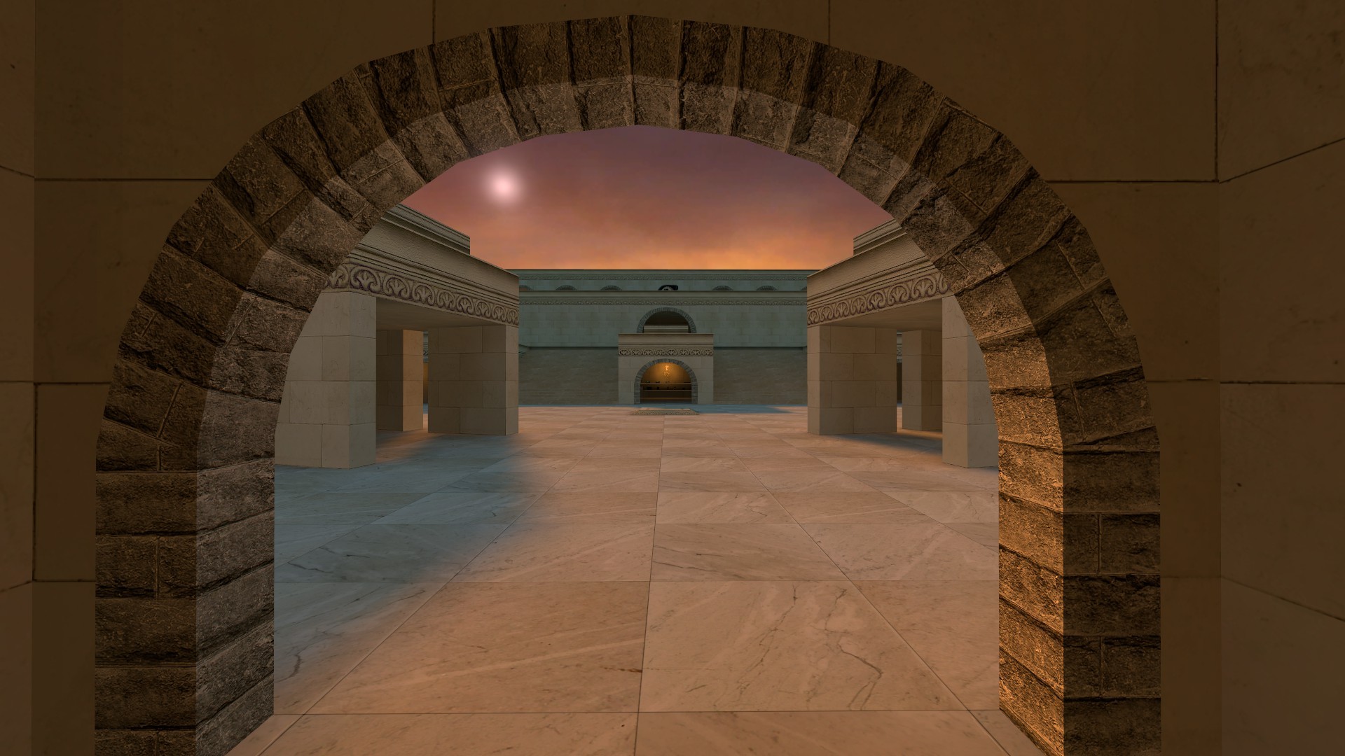 An arena-temple, enjoyable with any gravity, even in team-match, having specific spawnpoints and balanced weapons on the opposite sides.
