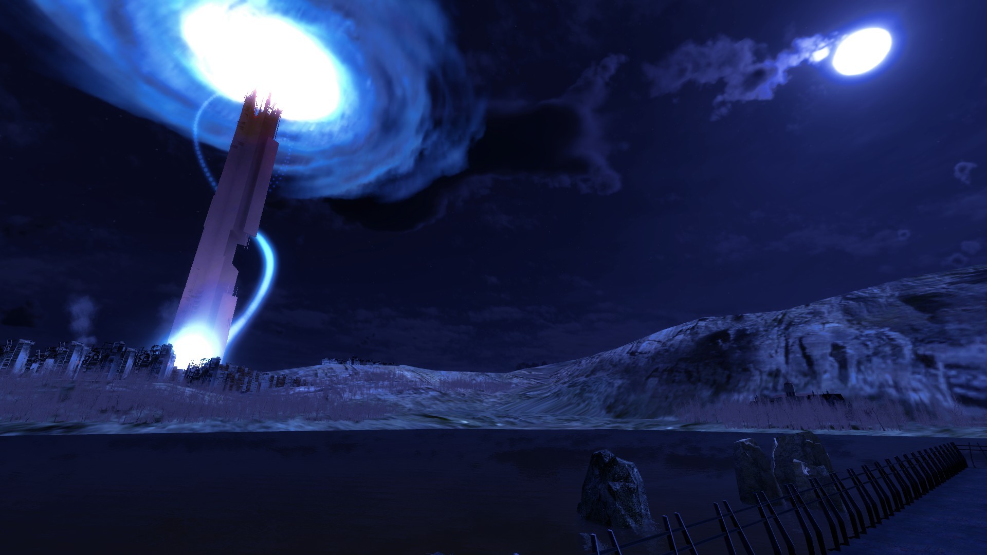 This map has HL2 EP 1 and 2 content for that pretty skybox.