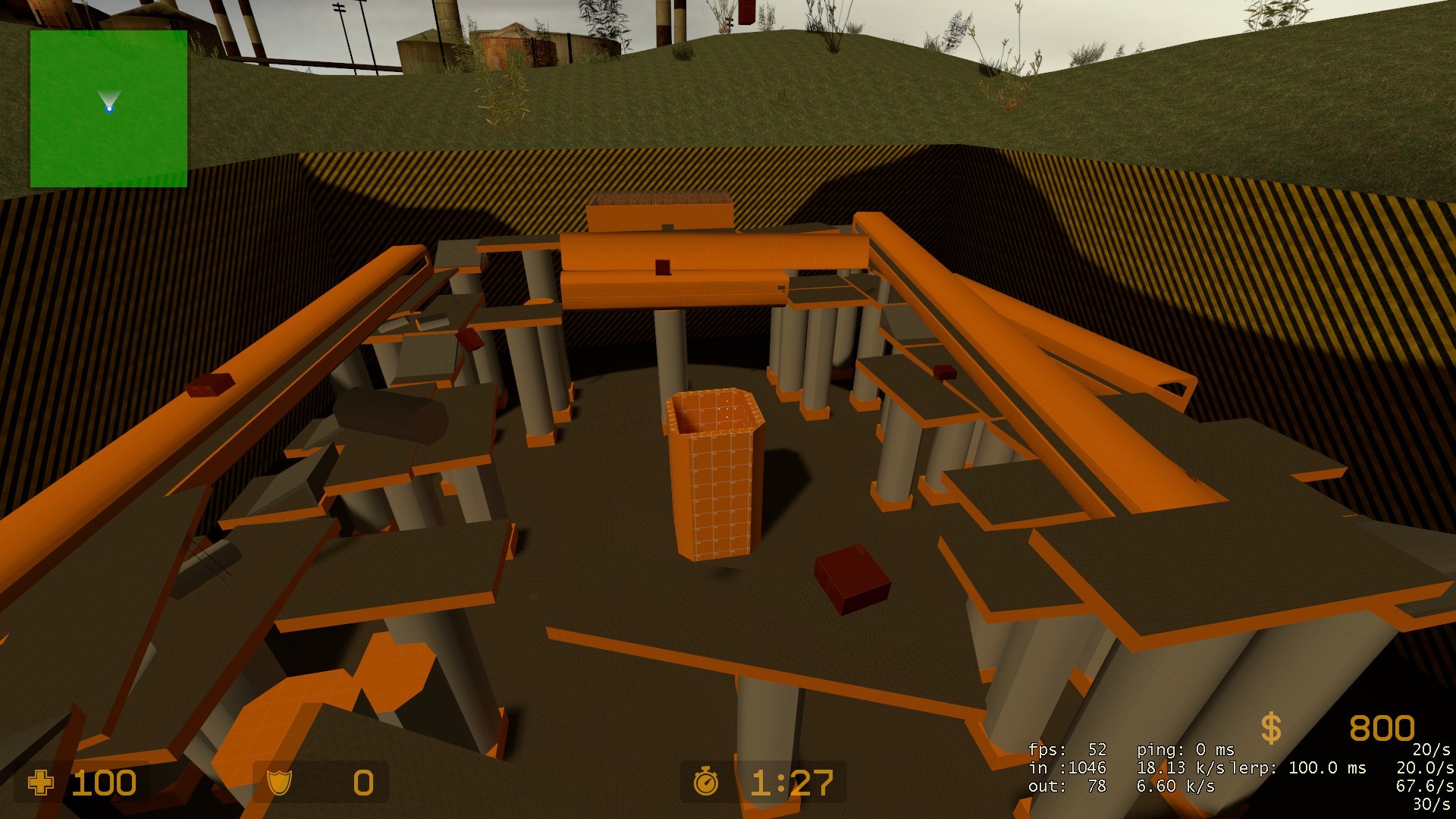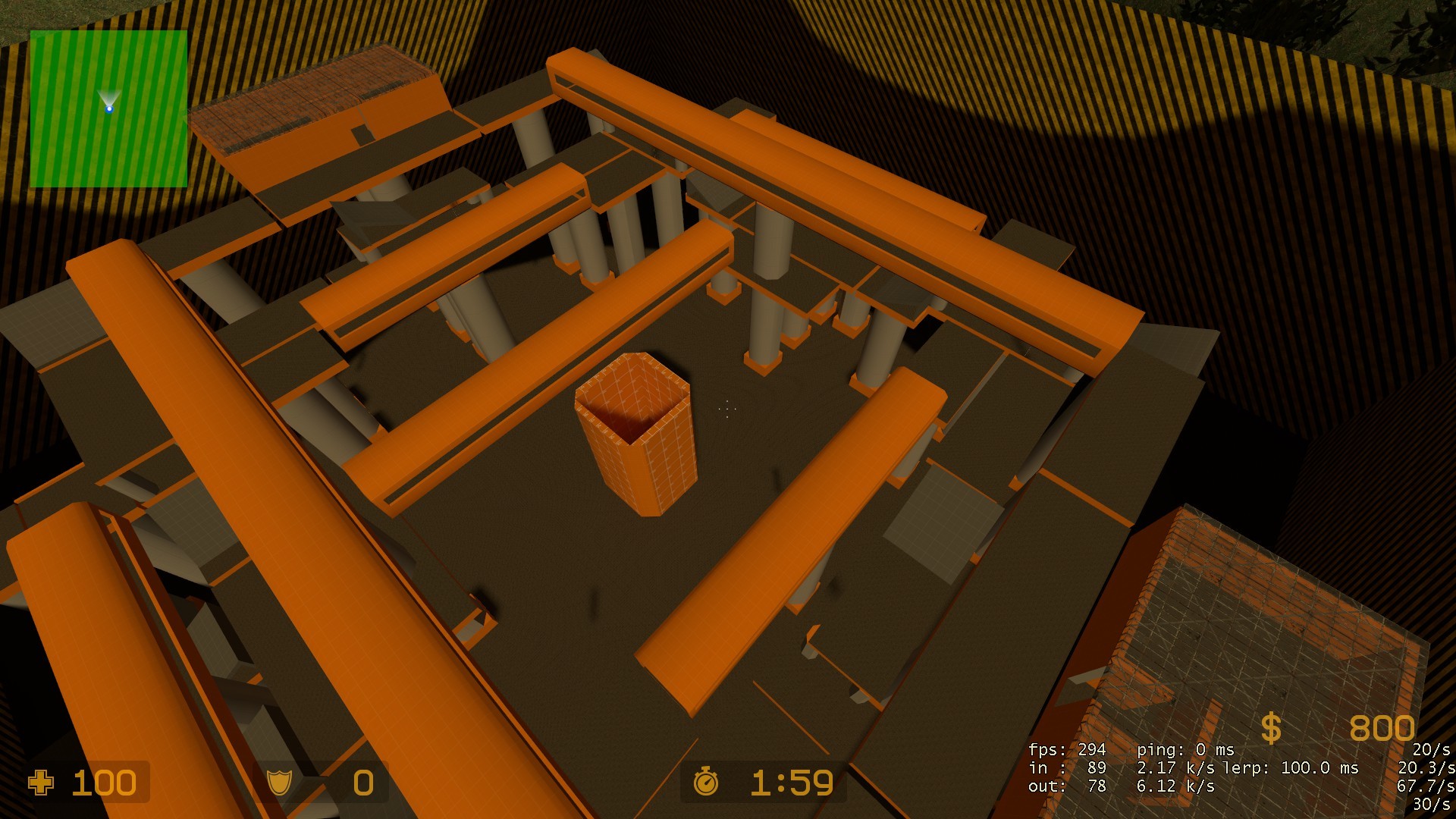 In the environment of development, the CT and T team must survive the outburst of the blocks shooting out of the middle of the map, how long can your team survive?