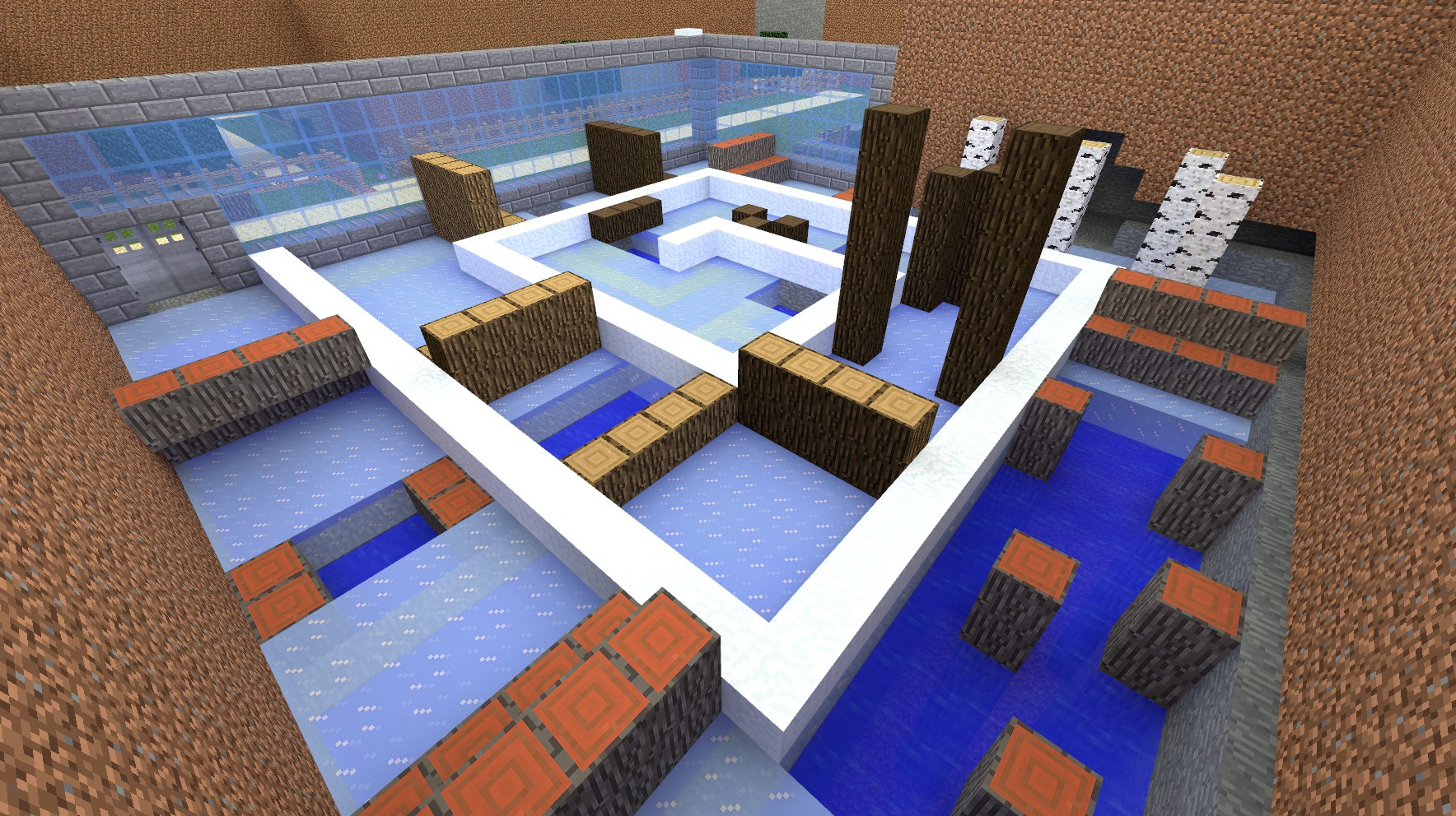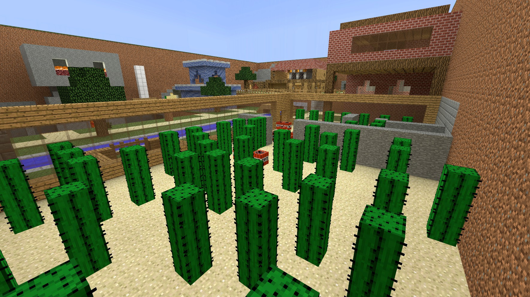 Different Minecraft themed areas (cave, desert & snow)