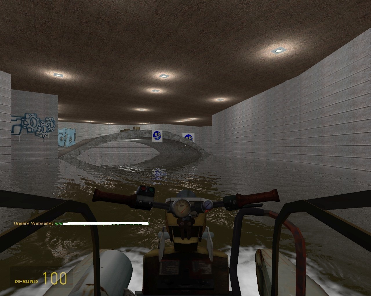 The story continues. The racing teams have flooded a card path and races now over the water. This map is the first in our Racer story that there is only one level. The track is something schwirieger. Sprungschantzen are also in the water, and can not be seen. There are no weapons under water. As you can see from the pictures, it is under the first bridge RPG's. How do you get? find it out :-) On request of some players who have registered through our website to have wished that you can go at the destination back to the start, without which the map is completed. At the destination is left is a door. Touch the door, and the player is back in the game.