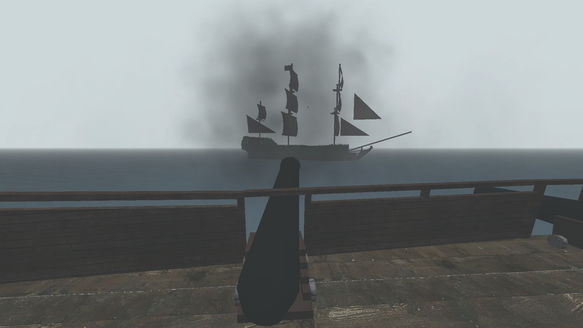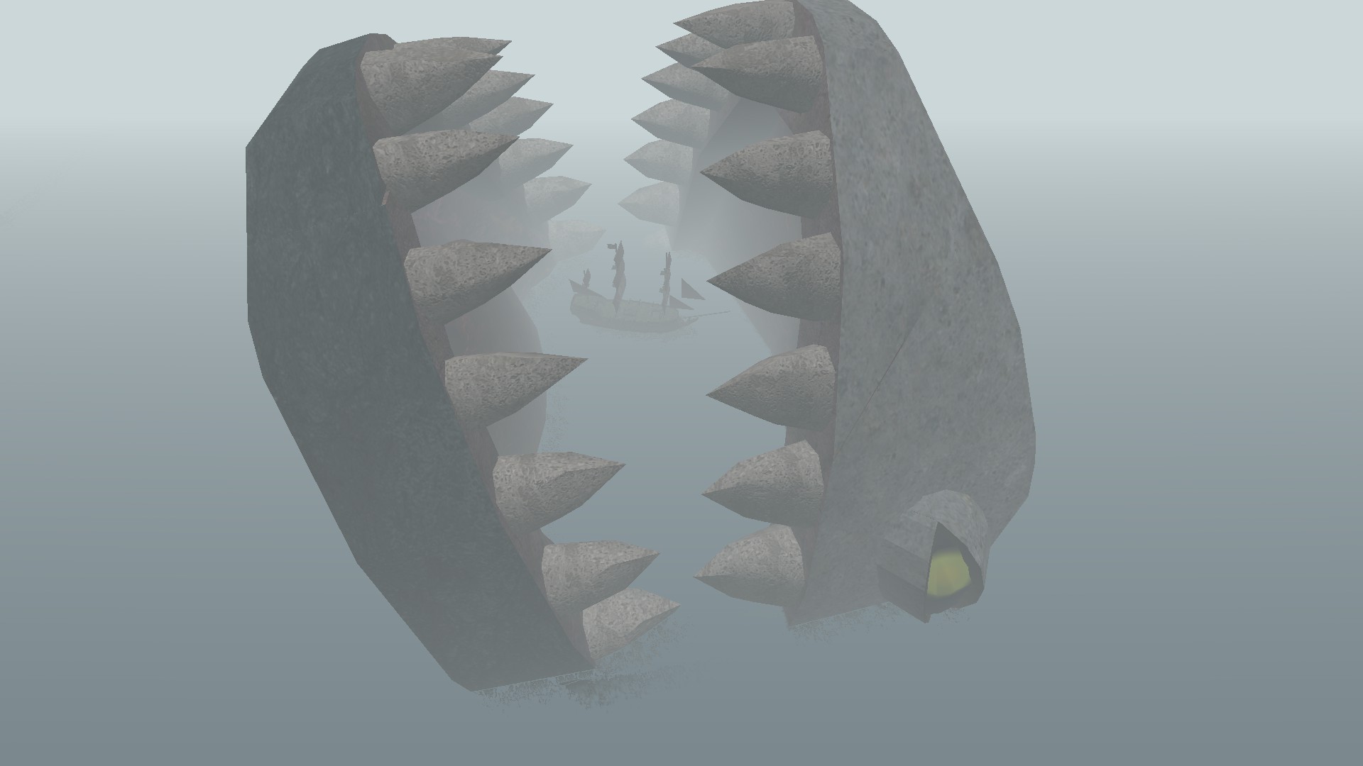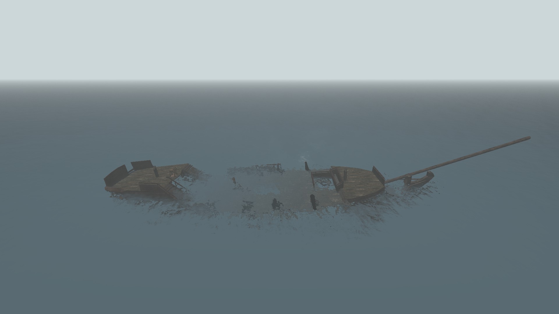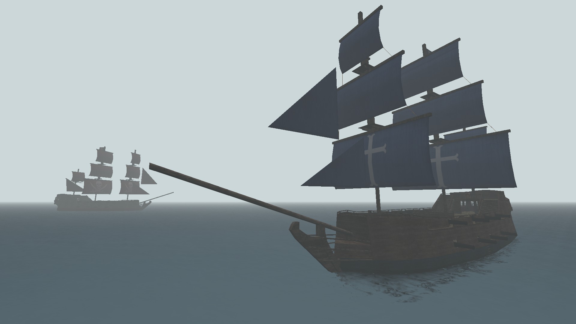 The Ocean contents of the map consist of 2 fully sailable, semi-destructible, completely sinkable, physics-based pirate ships that each team can sail about the ocean, and attack with.
