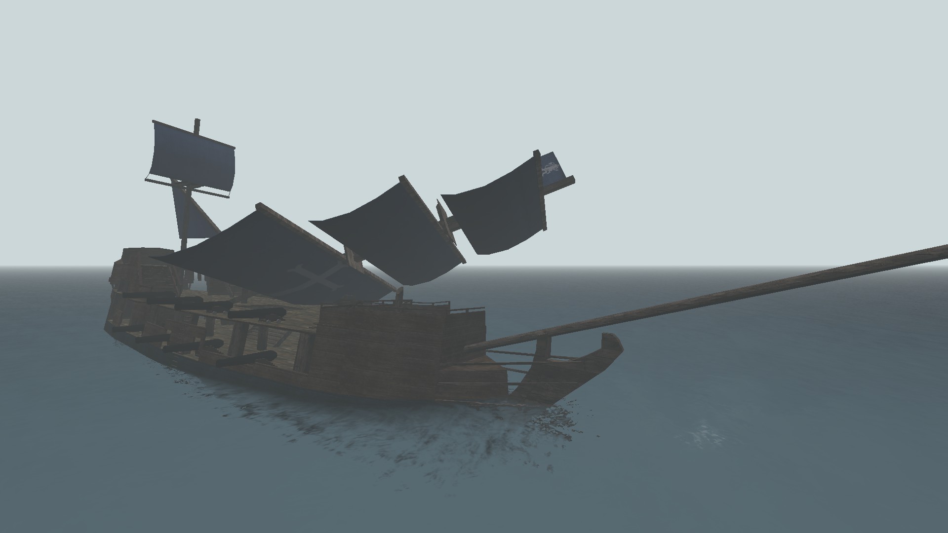 -A gradual sinking phase once the ship has taken enough damage. (Signified by the ship losing all three masts)
