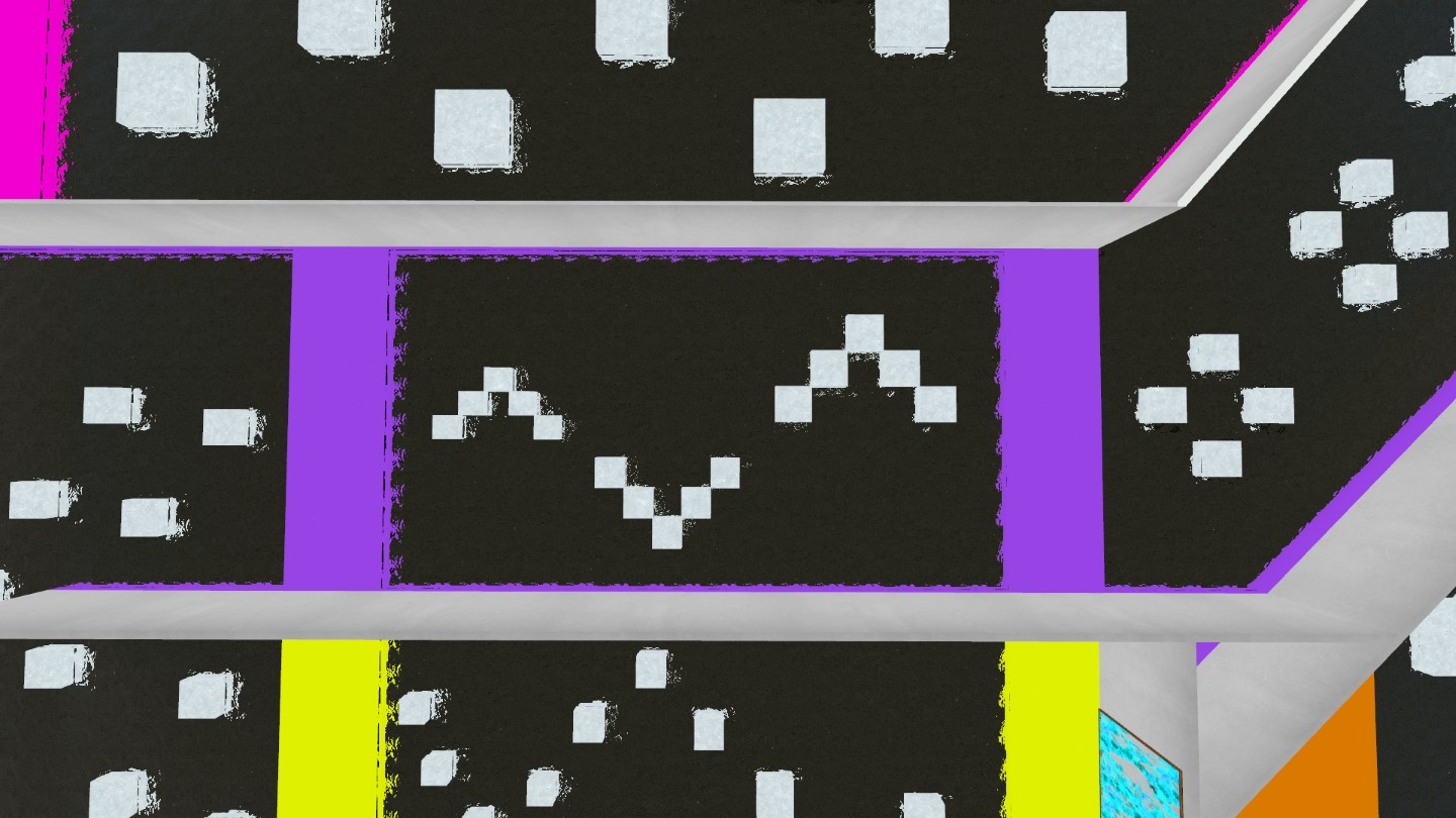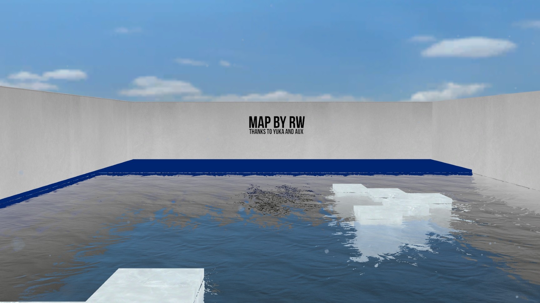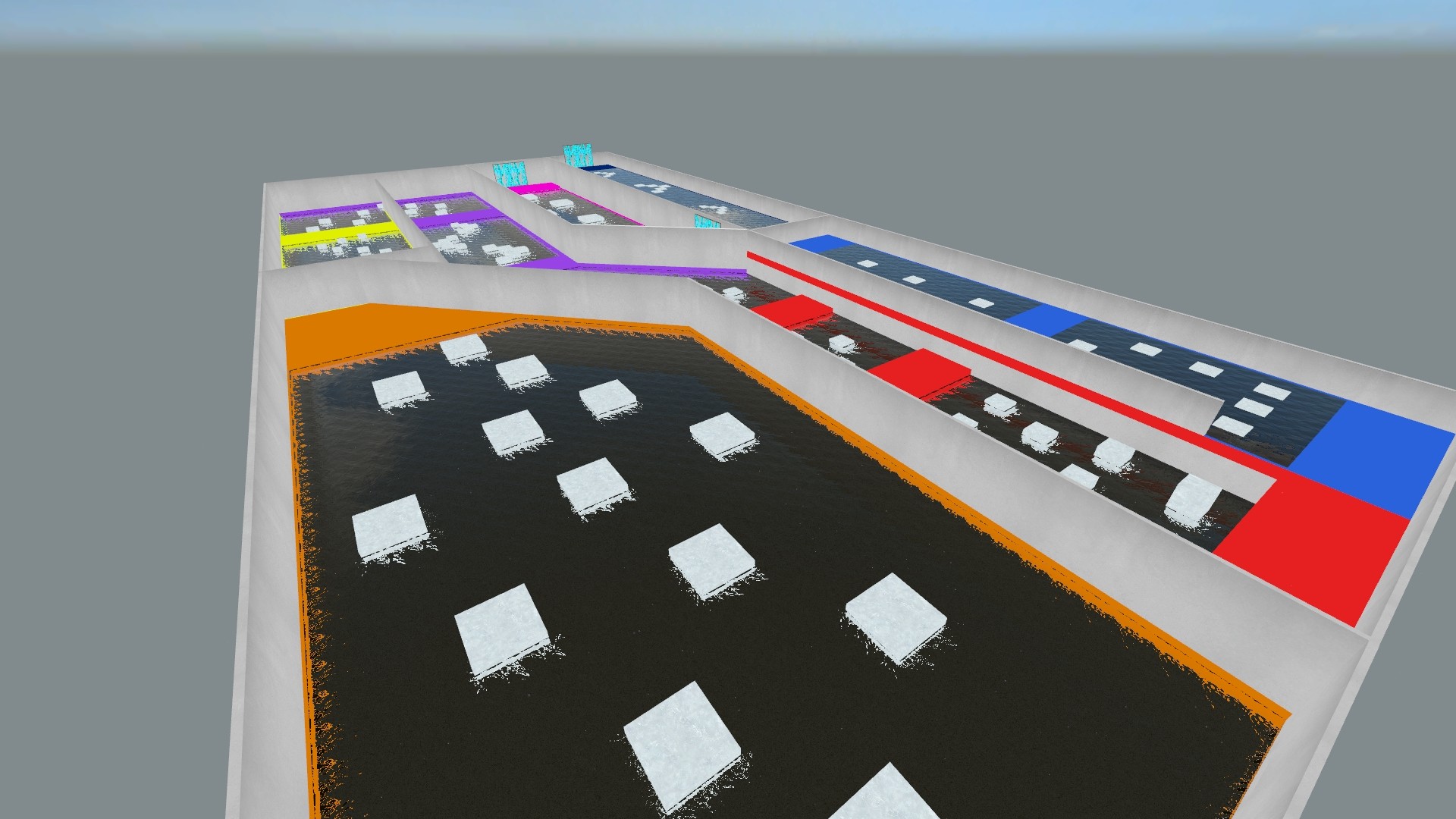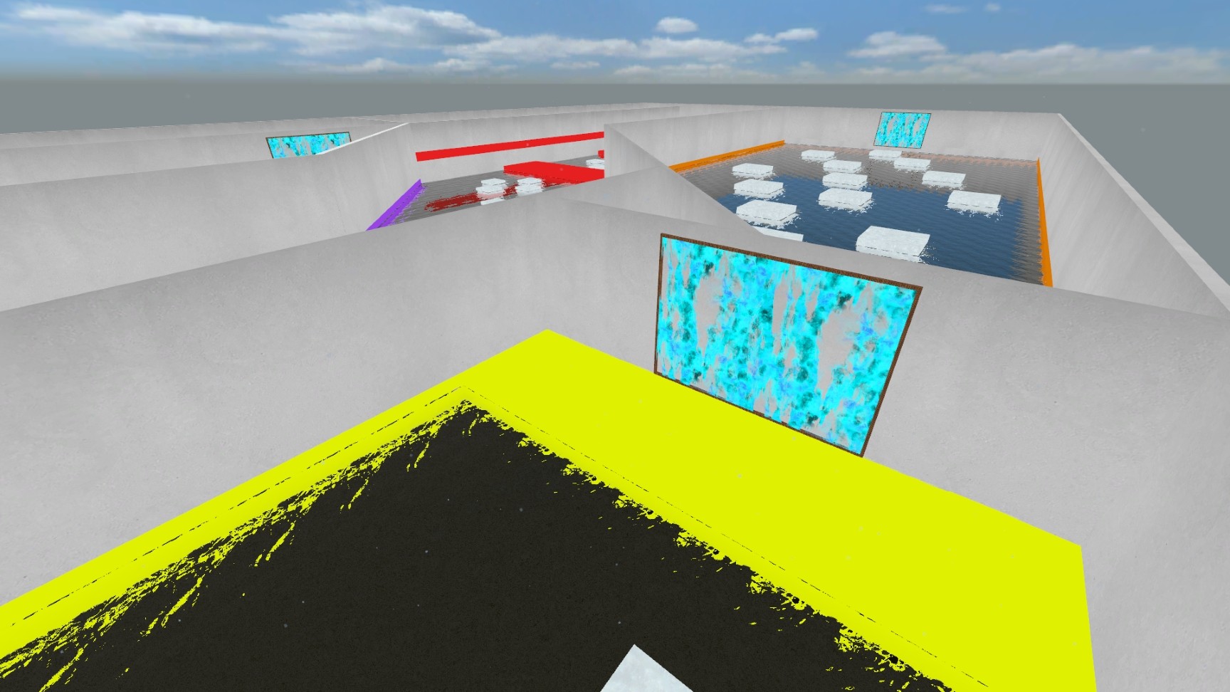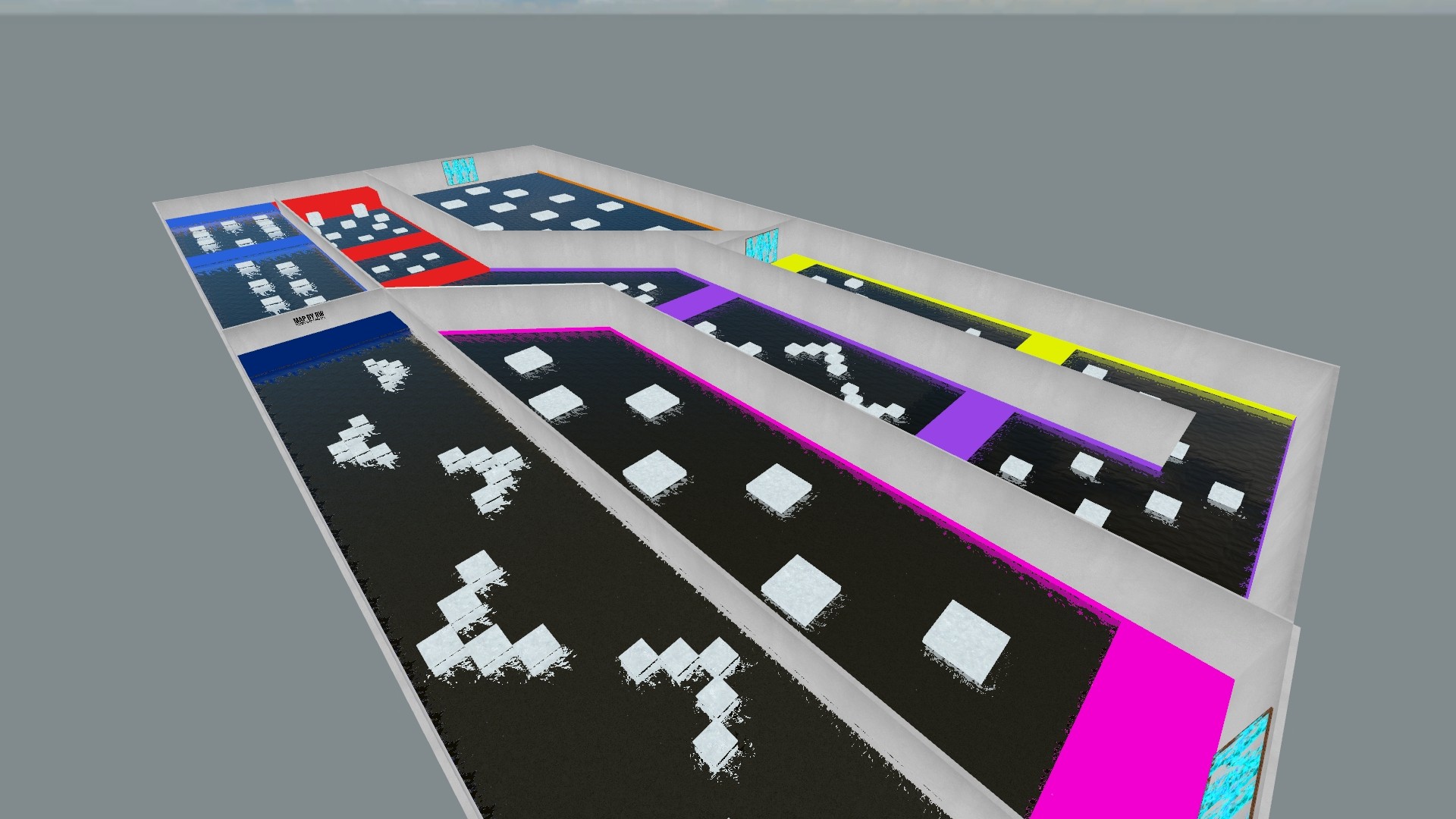 A short speedrun bunnyhop map with bright colours, forward teleports and attractive water.