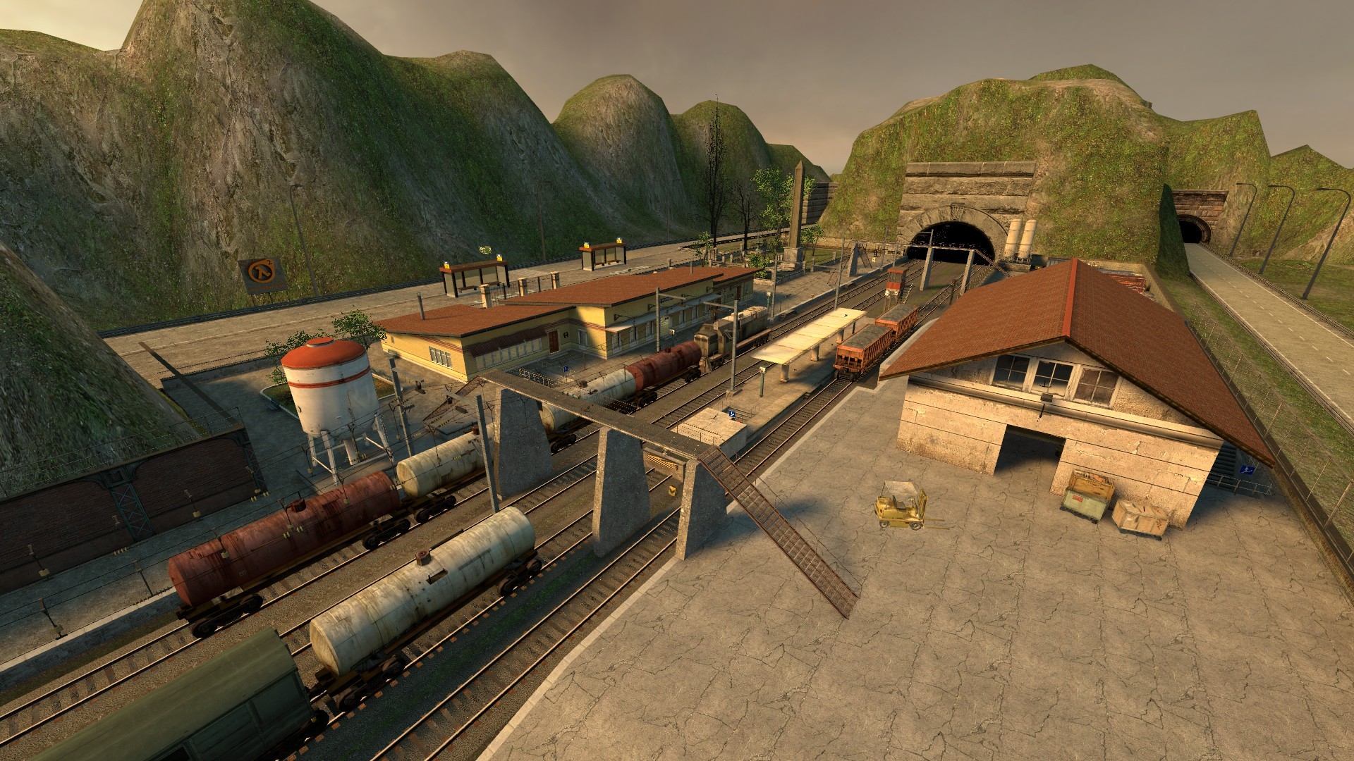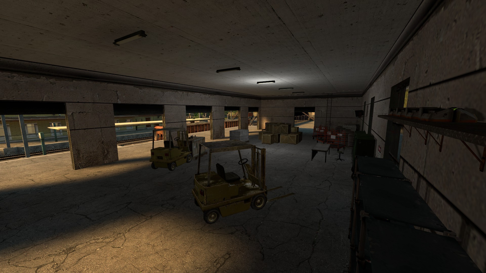 Improved the textures of monitors and display, now self_illuminated, corrected the dark section of track in front of the containers, put usable items in breackable crates, not working in the previous version, replaced a tree that produced an unrealistic shadow, eliminated some overlapping brushes in the garden fence and the faulty foliage decals on the ground.