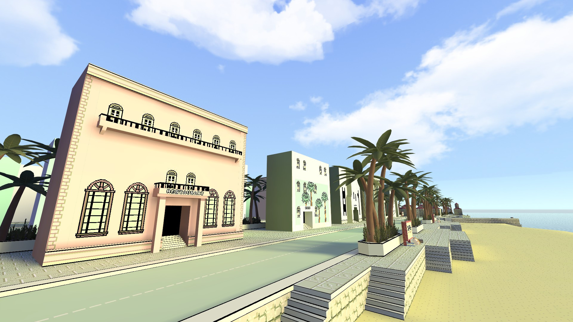 Summers (EARTHBOUND) - Trade / Deathmatch"The sky's blue and the sun is high. The prices here are so high, it'll make your face turn blue! That's Summers!"Map is a faithful recreation of the seaside tourist trap 'Summers' from Earthbound. Earthbound aka 'Mother 2' was released in 1994 for the SNES.The map was created from scratch for GMod in 2016, by Clacli. Clacli's original post to the Garry's Mod Steam Workshop can be found here. Map makes use of a skybox by Kiira available on OpenGameArt.org.I implemented advanced door functionality, respawn rooms, geometry edits and further adjustments to make it play well in vanilla Team Fortress 2.Totally-not-Summers also made a throwaway appearance in the credits of Undertale.Filename: trade_eb_summers