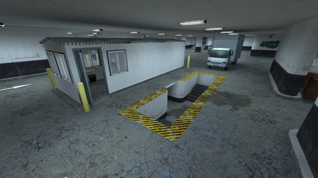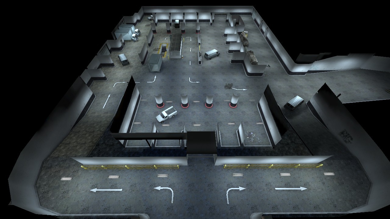 Underground complex, workshop cars. Map is designed for the player, weapons scattered points on the appearance of the players. We have a flyover zone purchasing T - CT.