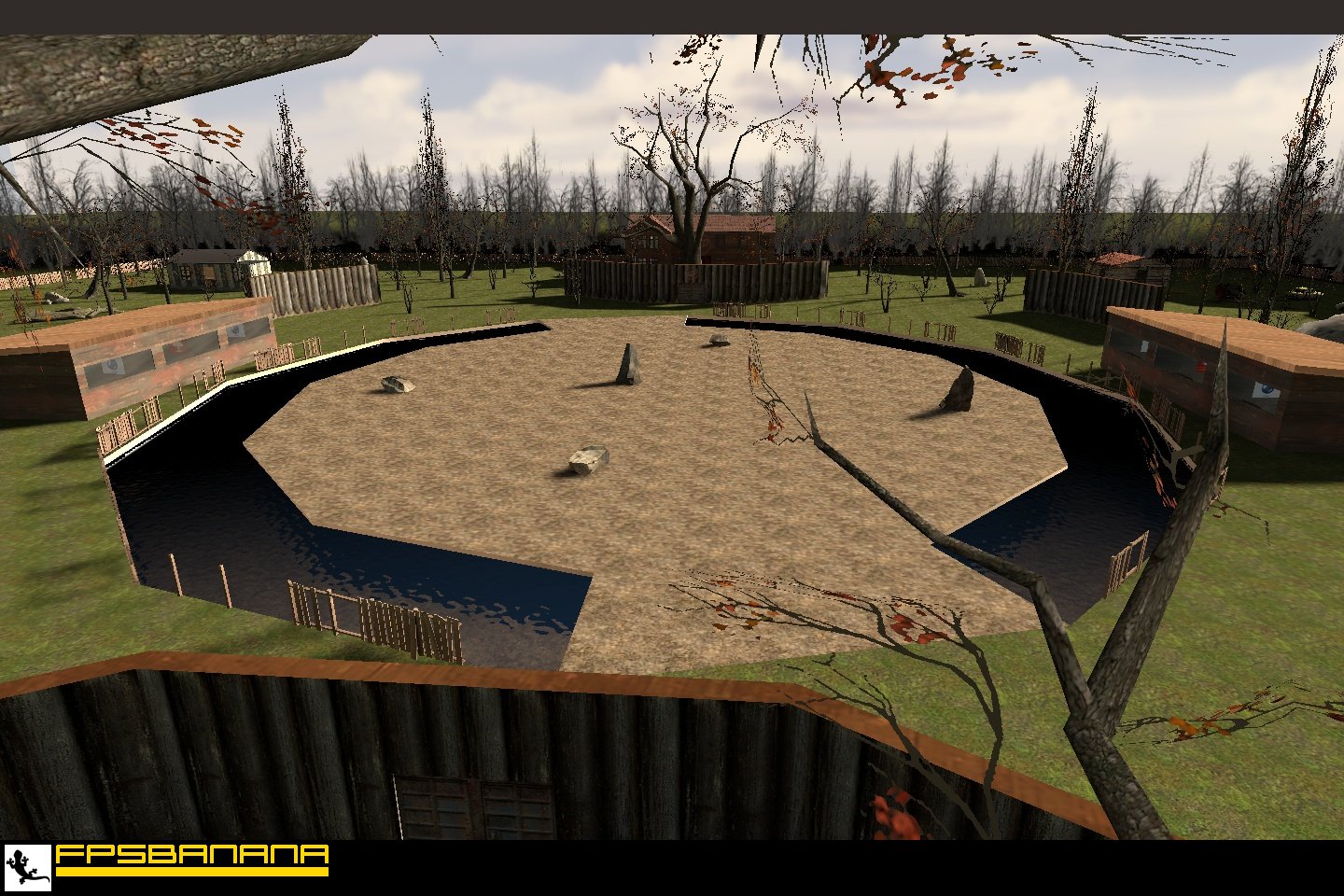 Each team has a house on each side of an arena area for most of the fighting to happen.