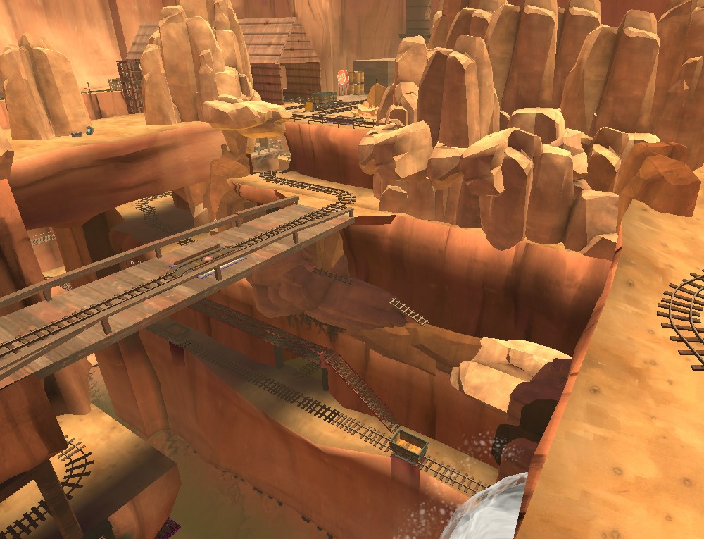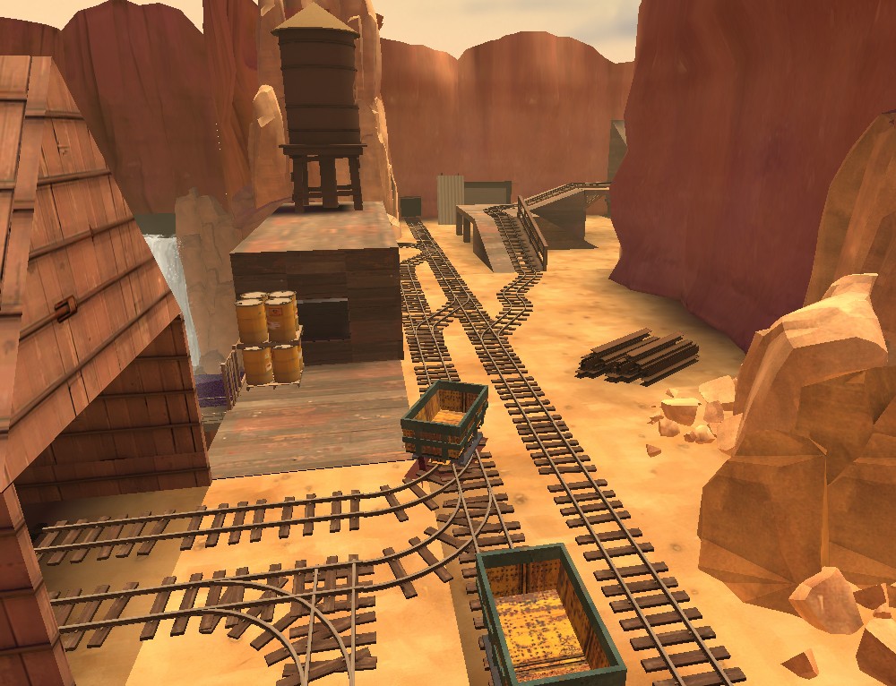 Specials: Two mini-ctf style game play sections in the map. One demolition sequence to blow up a barricade. Death carts travel around the map on a random basis try not to get run over. Two dancing demo, pyro and heavy take a boat trip. A drunken demo after a picnic.
