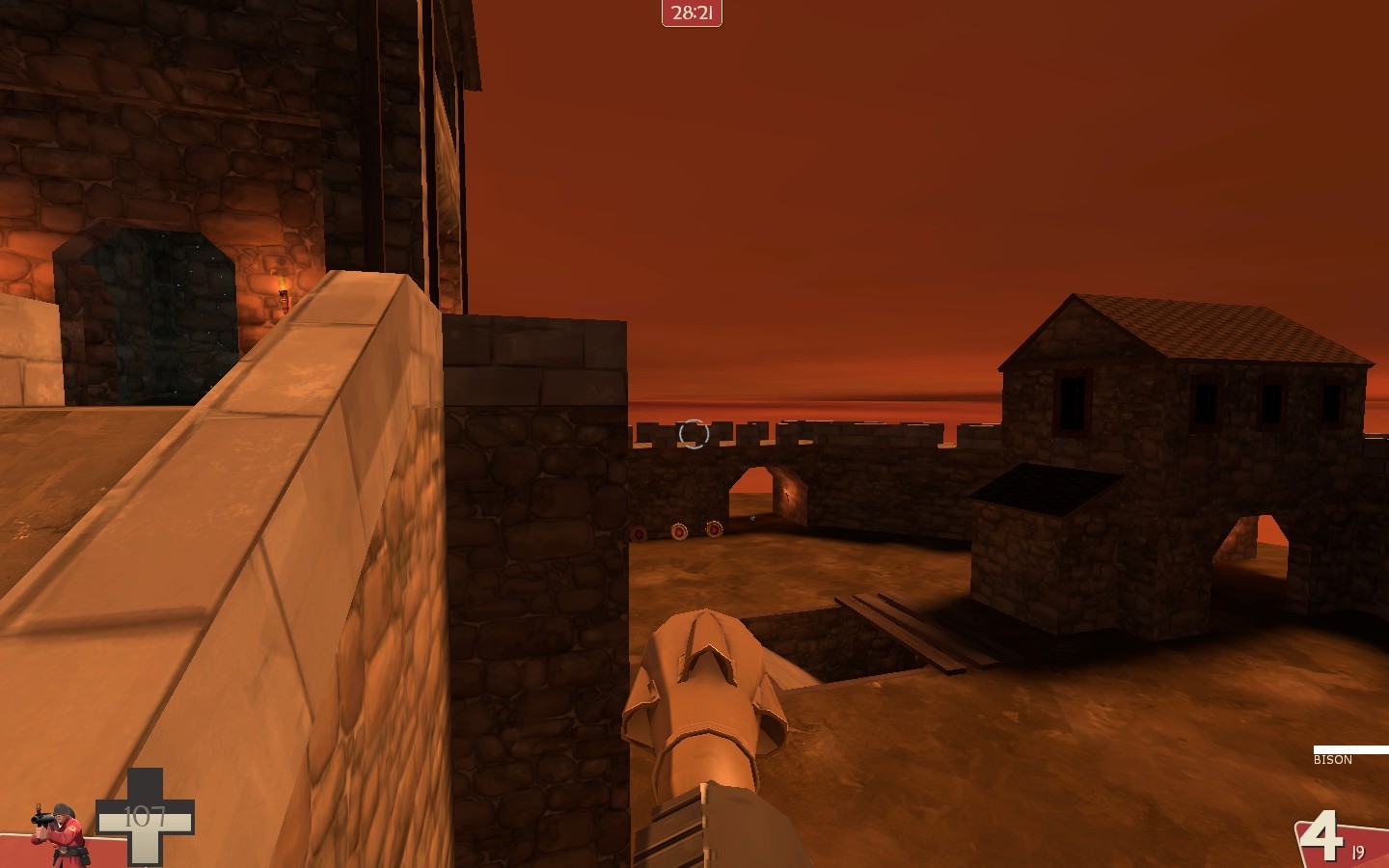It features an outer area, a courtyard, battlements with braziers for Huntsman Snipers, several gateways that lead onto the courtyard as well as rear ramps that lead onto the battlements. Finally, there is a basement with a full health kit and a sniper tower with a brazier. The tower features a gravity lift powered by mysterious energy which seems to have healing properties.