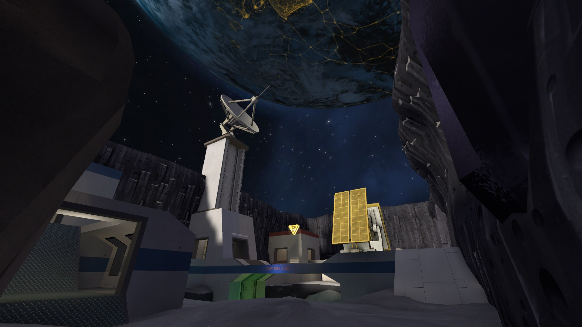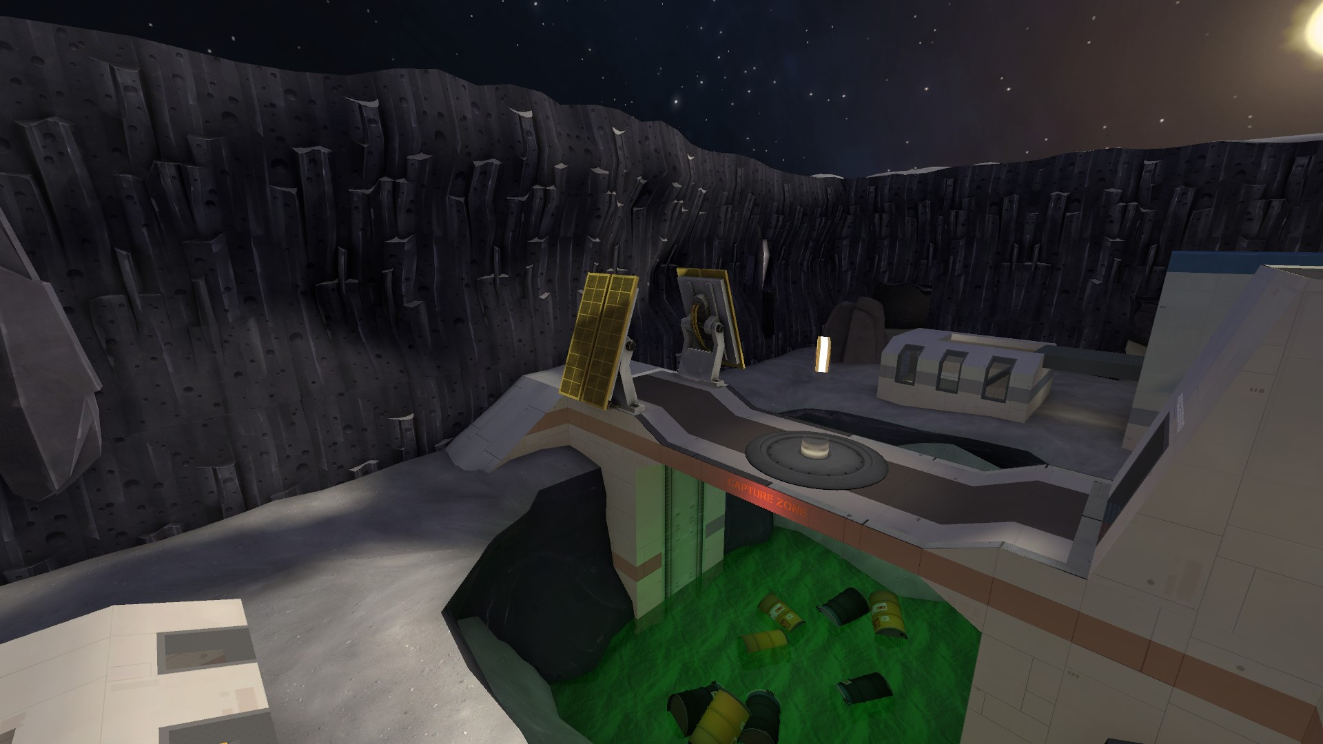 Welcome to space, mercenaries!This is just another "combat on the Moon" KOTH type of map.Map created by sniperstyx and Illuminatus.Tools used:- Hammer Editor- VIDE- Photoshop (for some custom textures)- VTFEditCustom Textures Used:- Space Skybox (https://gamebanana.com/mods/7222)- BLU variants for the "moon" textures (sniperstyx made them)Pro Tip: Do not fall off the point or else you will overdose on radiation. :)Compiled (multiple times) on 20/09/2022 (by sniperstyx)