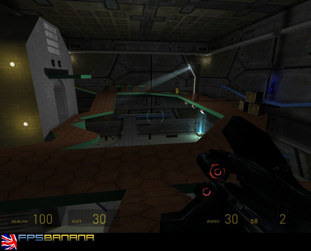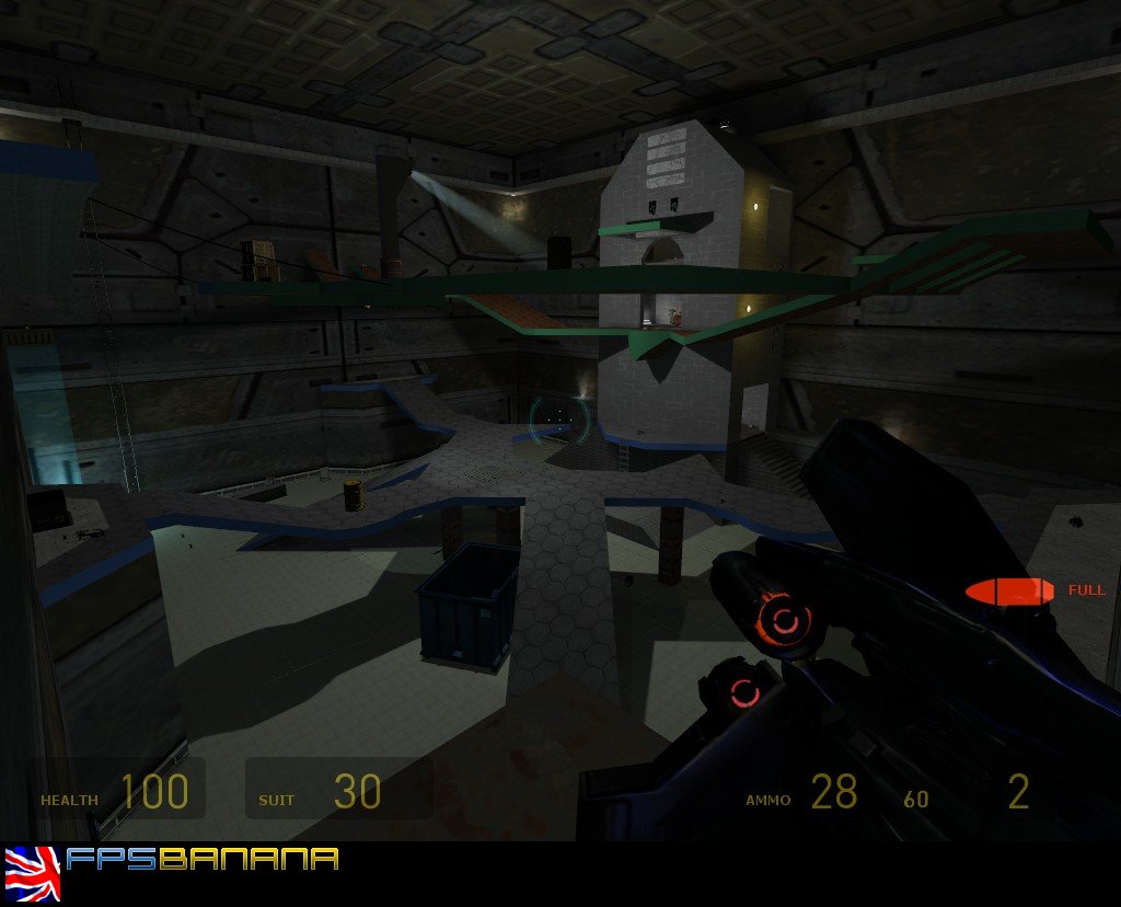 Fast paced interior futuristic killbox.Bounce around platforms quickly and hide in the shadows.