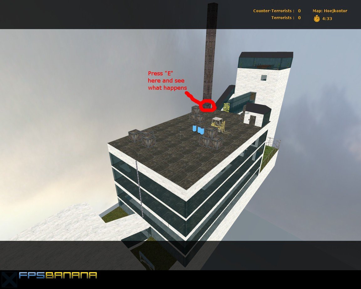 In the map is some elements from the Hoejhus9, exsample the T-Roof but i did so you cant really camp up there. You'll see. The reason why there is so many elements from the Hoejhus9 is that alot of them are great! I shield of the "bridge" because i hate when people B-hop down to CT-spawn too fast lol.
